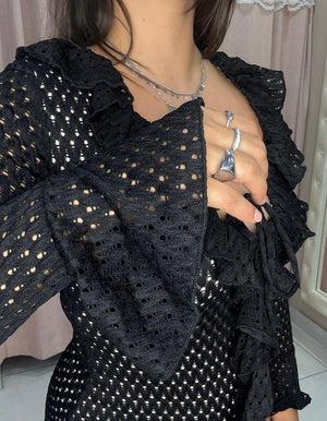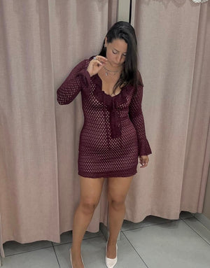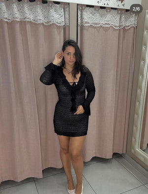 Abitino in lana leggera foderato con un colore a contrasto arricchito con rouche sul decolletè e maniche taglia unica elastico vestibilità xs s m