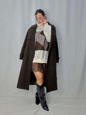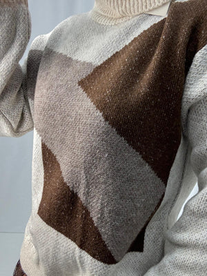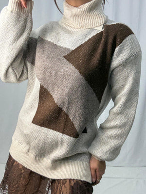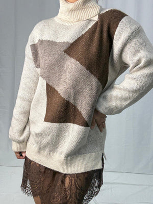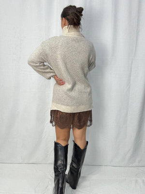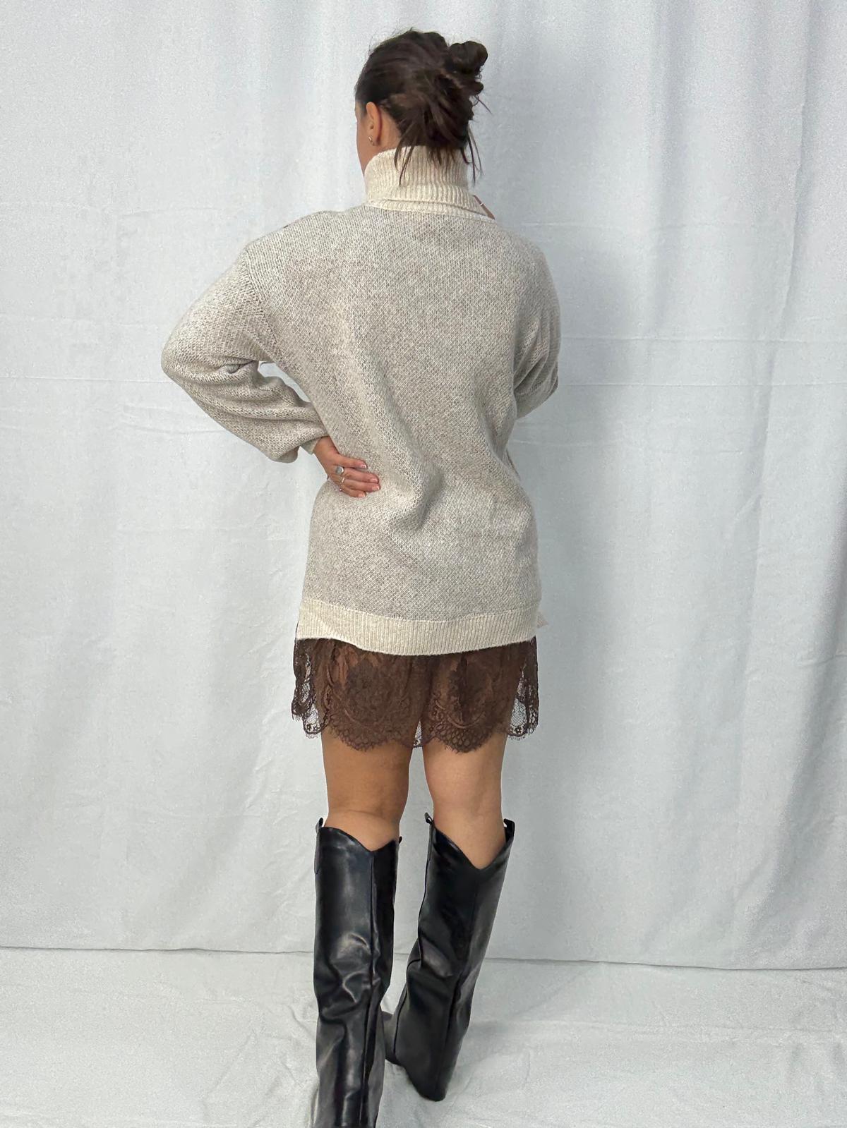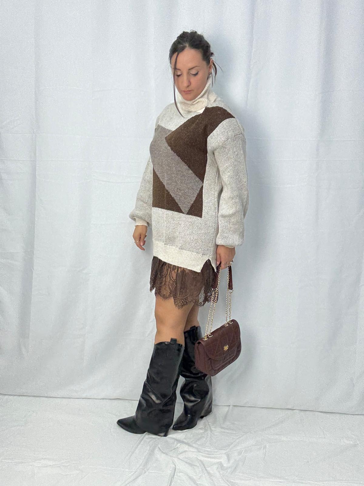 Abito in lana, collo alto, morbido, manica, Regolare dettaglio fantasia sul davanti, inserto in pizzo finale, modello oversize, ottimo, anche come maxi Pool con un leggings, taglia unica, vestibilità Per vestito, S ml