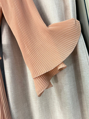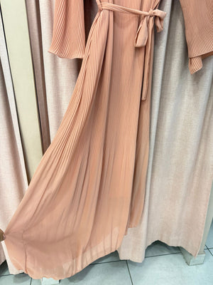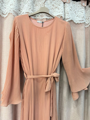 Abito lungo interamente plissettato con maniche ampie orlate cinturino in vita taglia unica veste fino ad una 56 abbondante