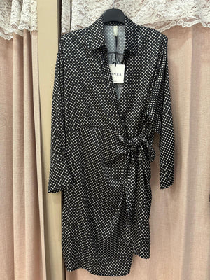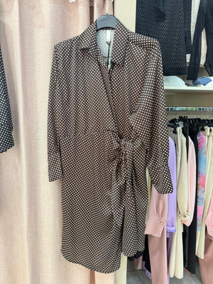Abito a portafoglio fantasia pois, con laccetto regolabile all’Interno e fusciacca all’esterno