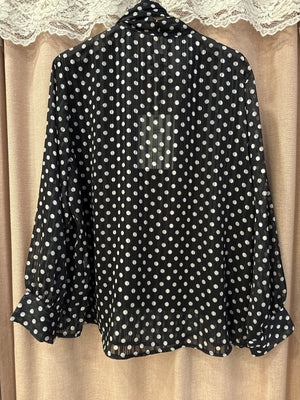 blusa velata fantasia pois con foulard al giro collo regolabile, fili laminato all’interno