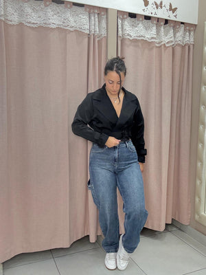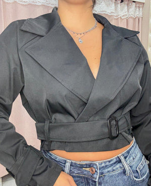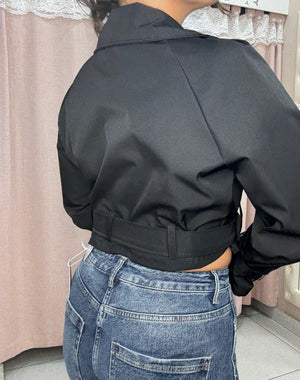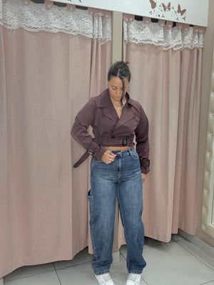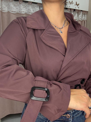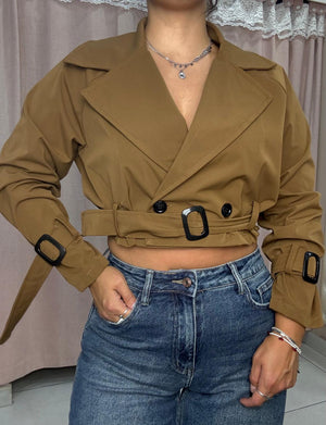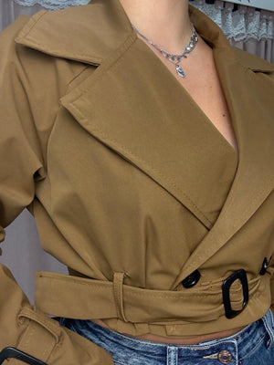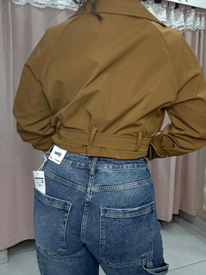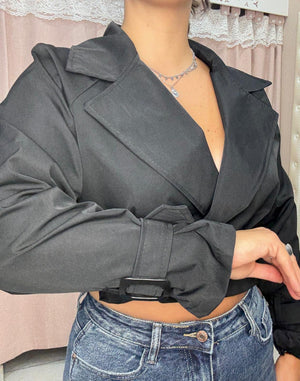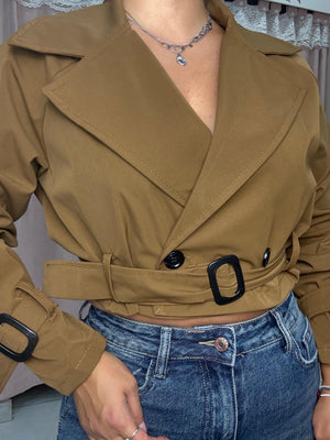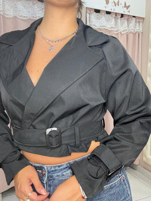 Trench in stoffa Crop con cintura incorporata e applicazione ai polsi modello doppio petto taglia unica vestibilità fino a XL