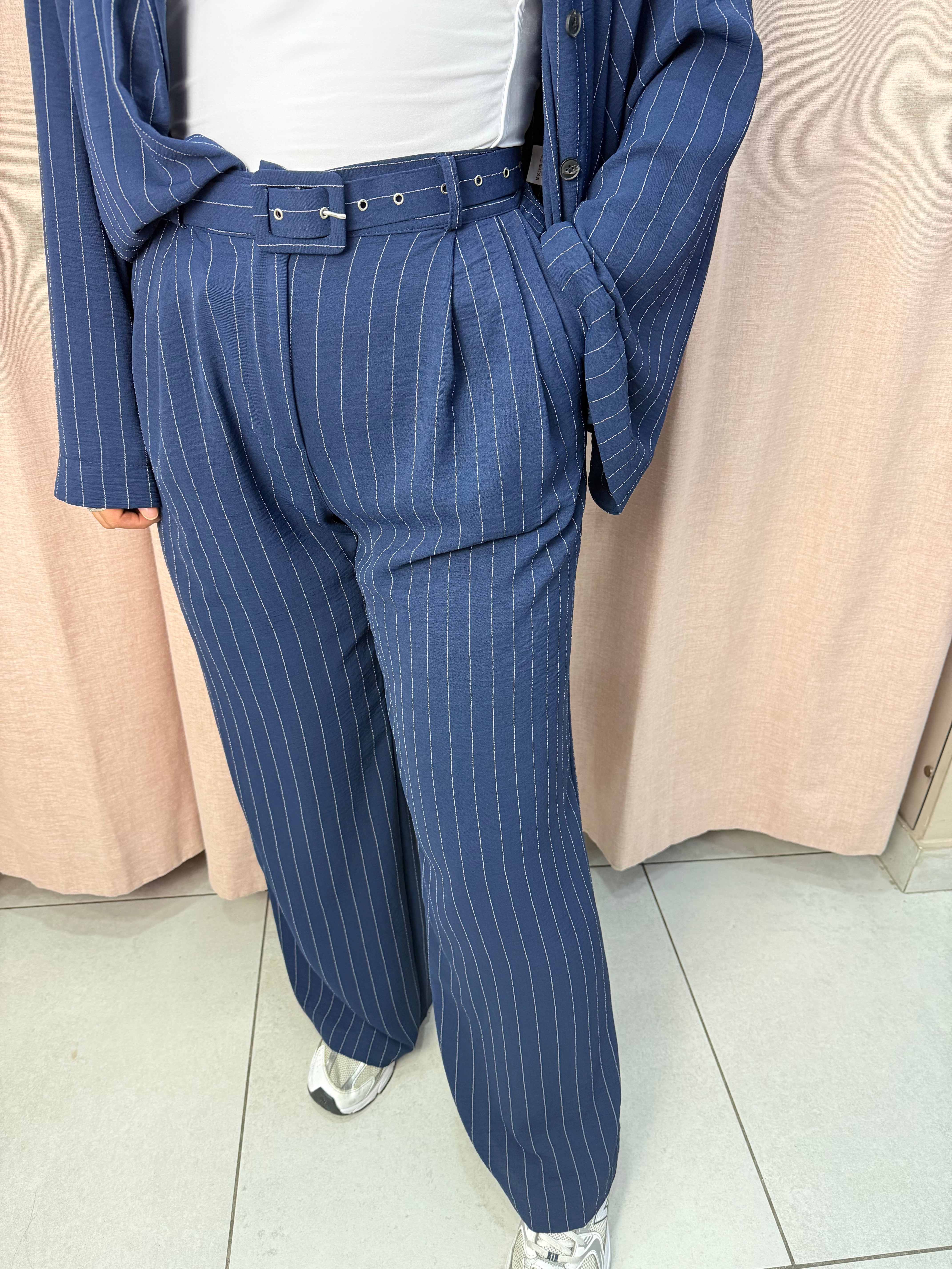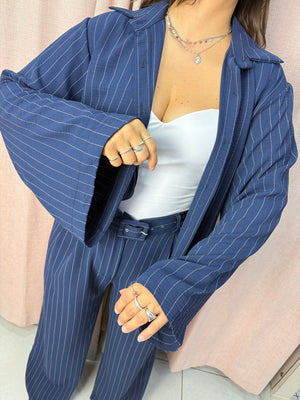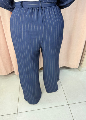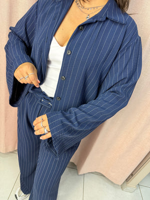 composto da Camicione con manica sblusata a campana e pantalone mod palazzo elastico con bustino frontale con zip e bottone e cintura integrata tono su tono