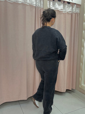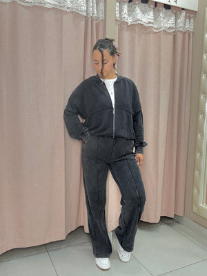 pantalone mod palazzo con elastico in vita e coulisse regolabile