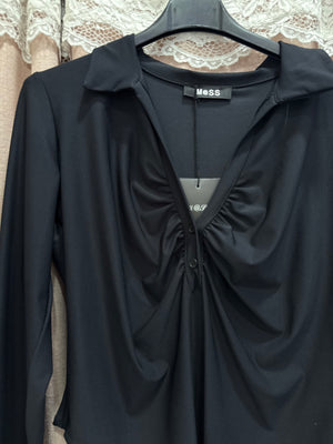 Body in lycra con colletto a camicia e scollo a V con arriccio e bottoni tono su tono