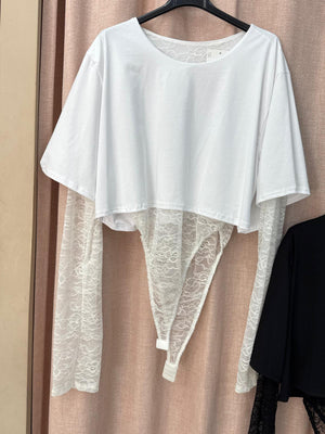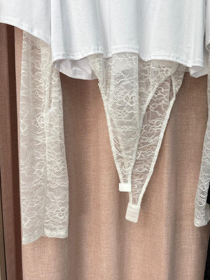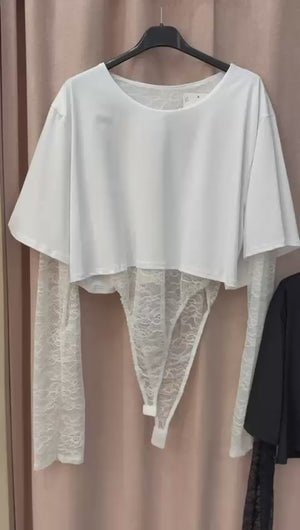 Body composto da maglia mezza manica con restante manica in pizzo incorporato, taglia unica vestibilità fino a 56 elastico
