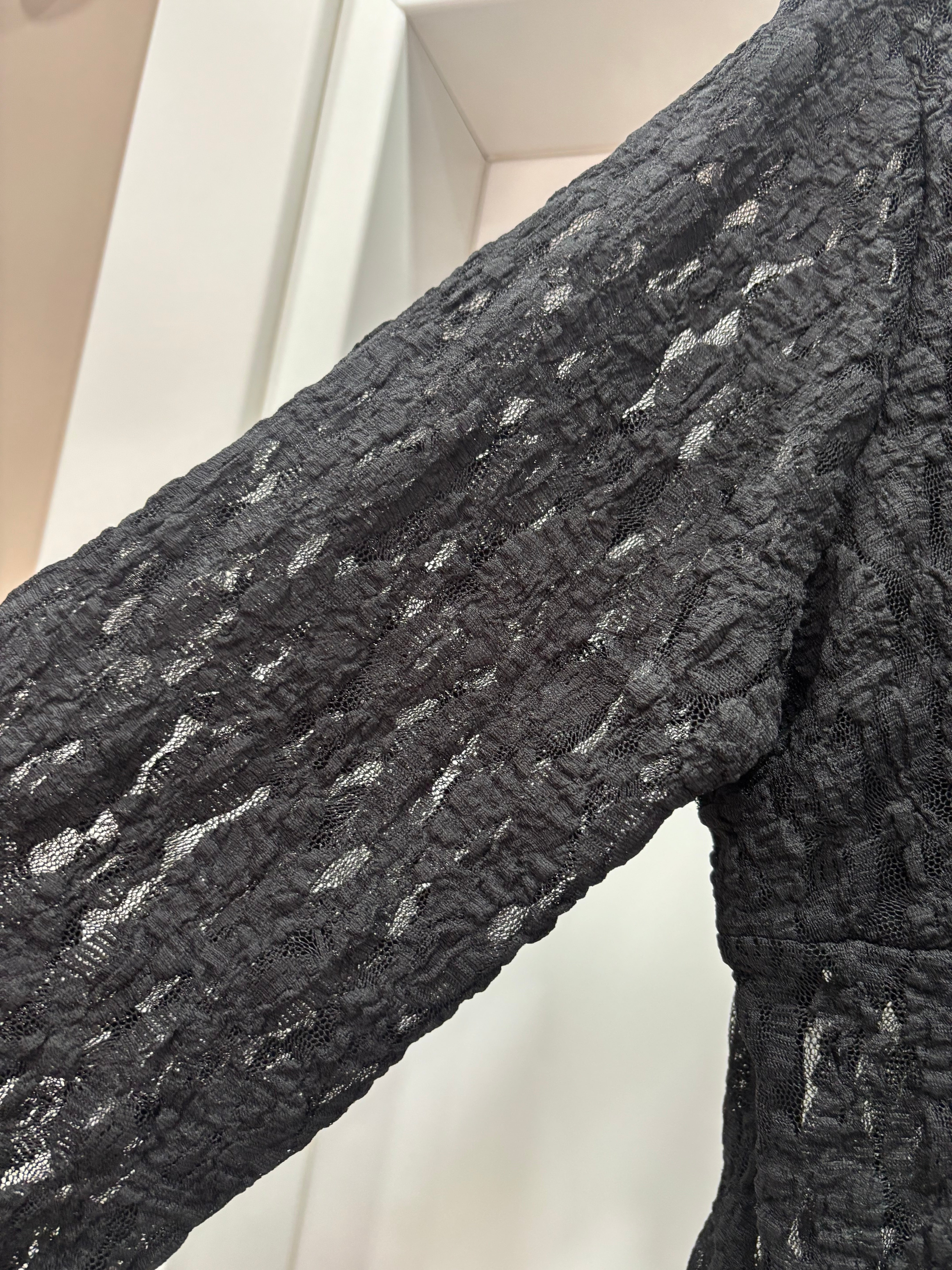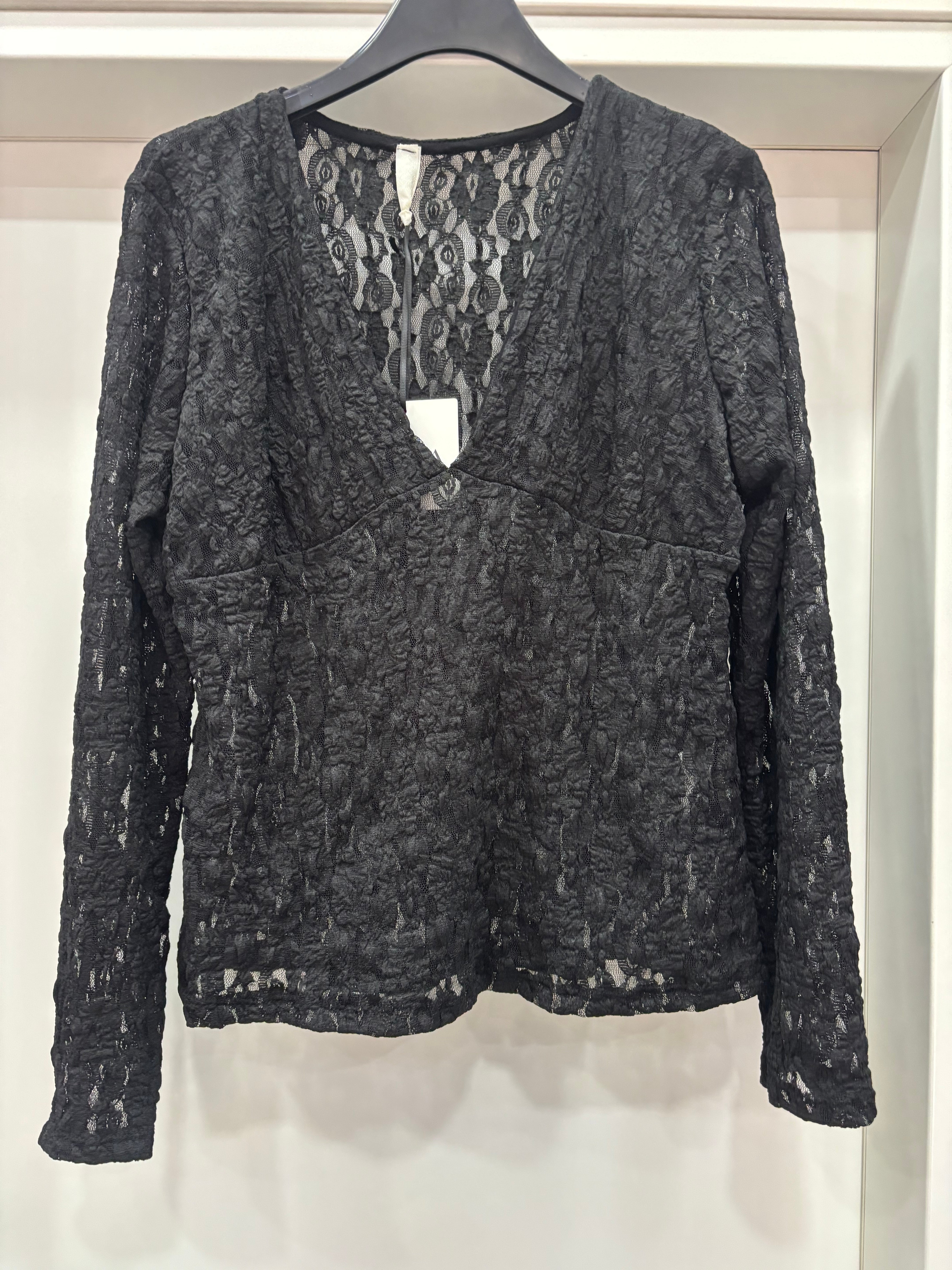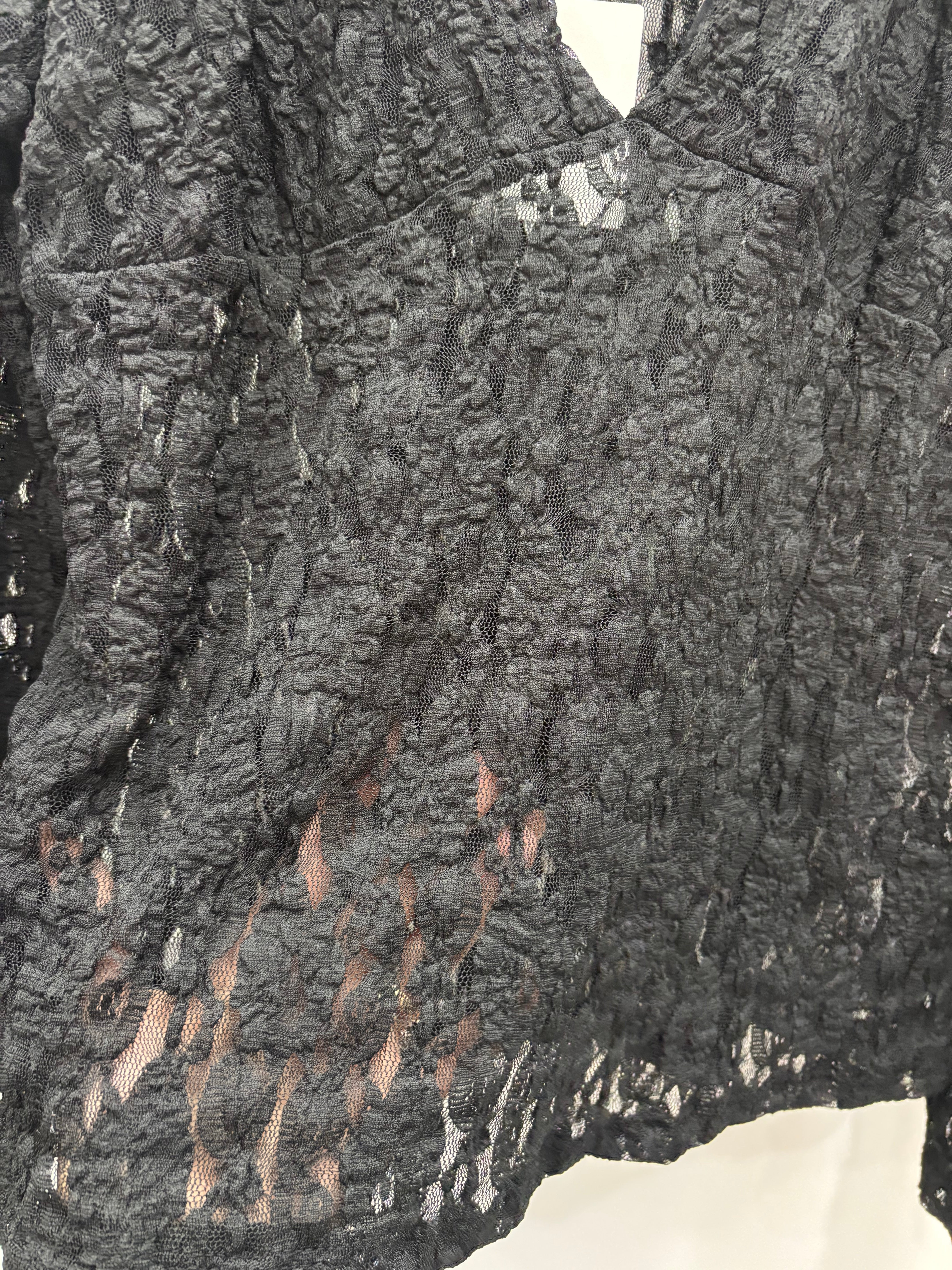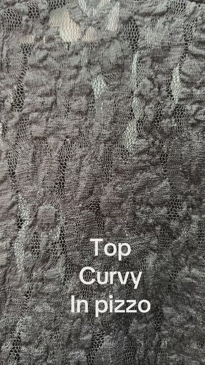 Top interamente in pizzo trasparente, coppa seno foderata taglia unica, vestibilità da 46 fino ad una 52 abbondante