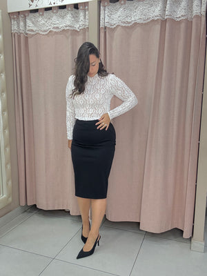 Gonna lounguette bandage in tessuto elastico interno sul giro vita, spacchetto sul retro