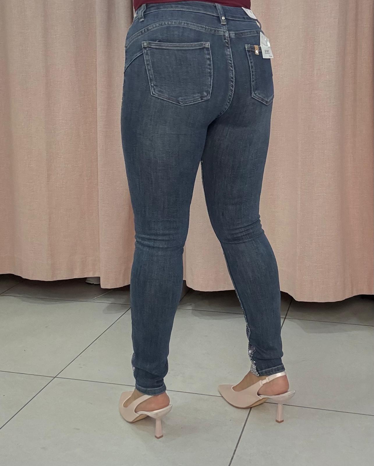 Jeans mod skinny, vita alta, multi brillantinato sul davanti