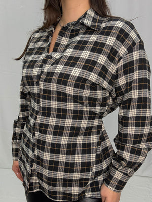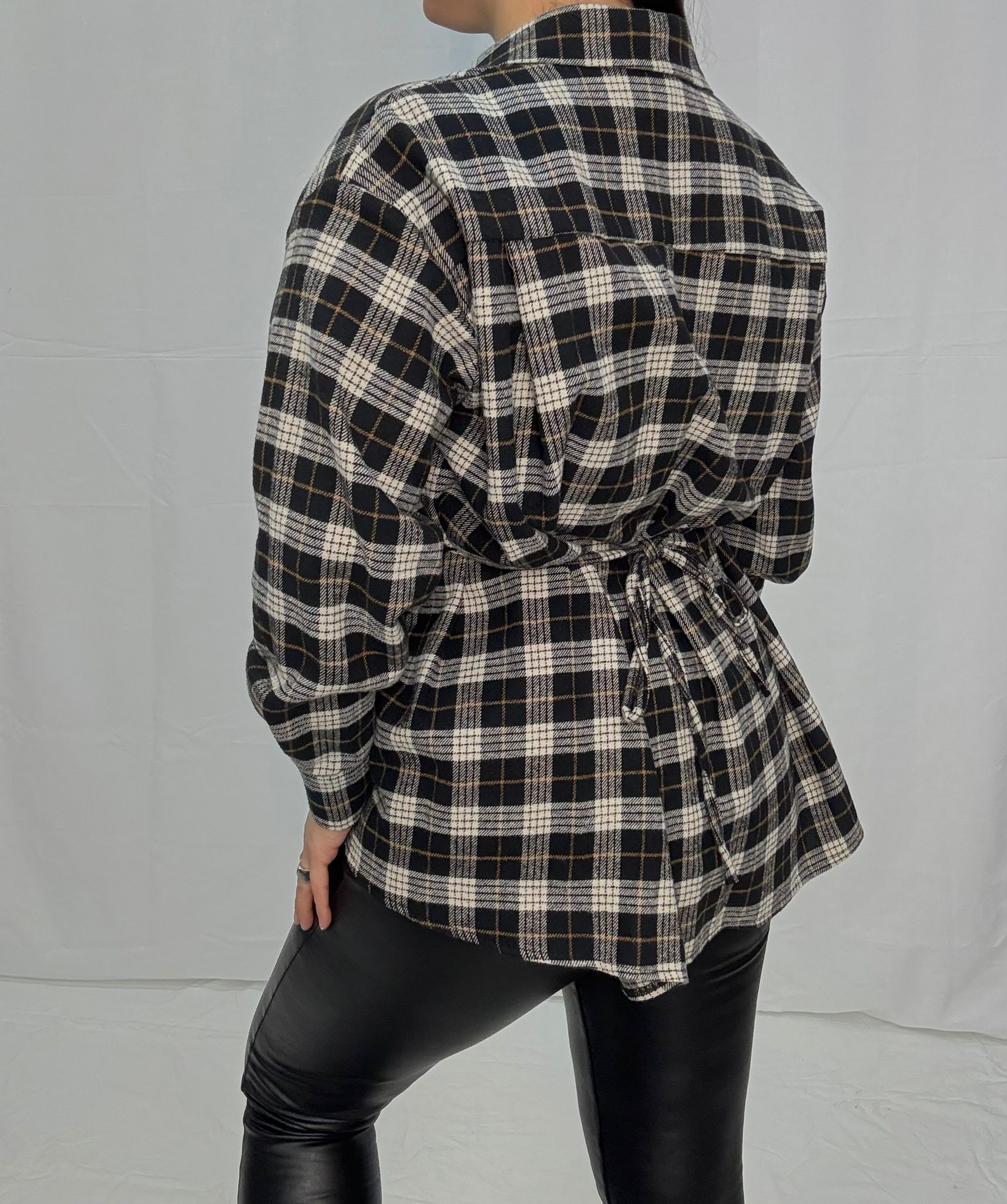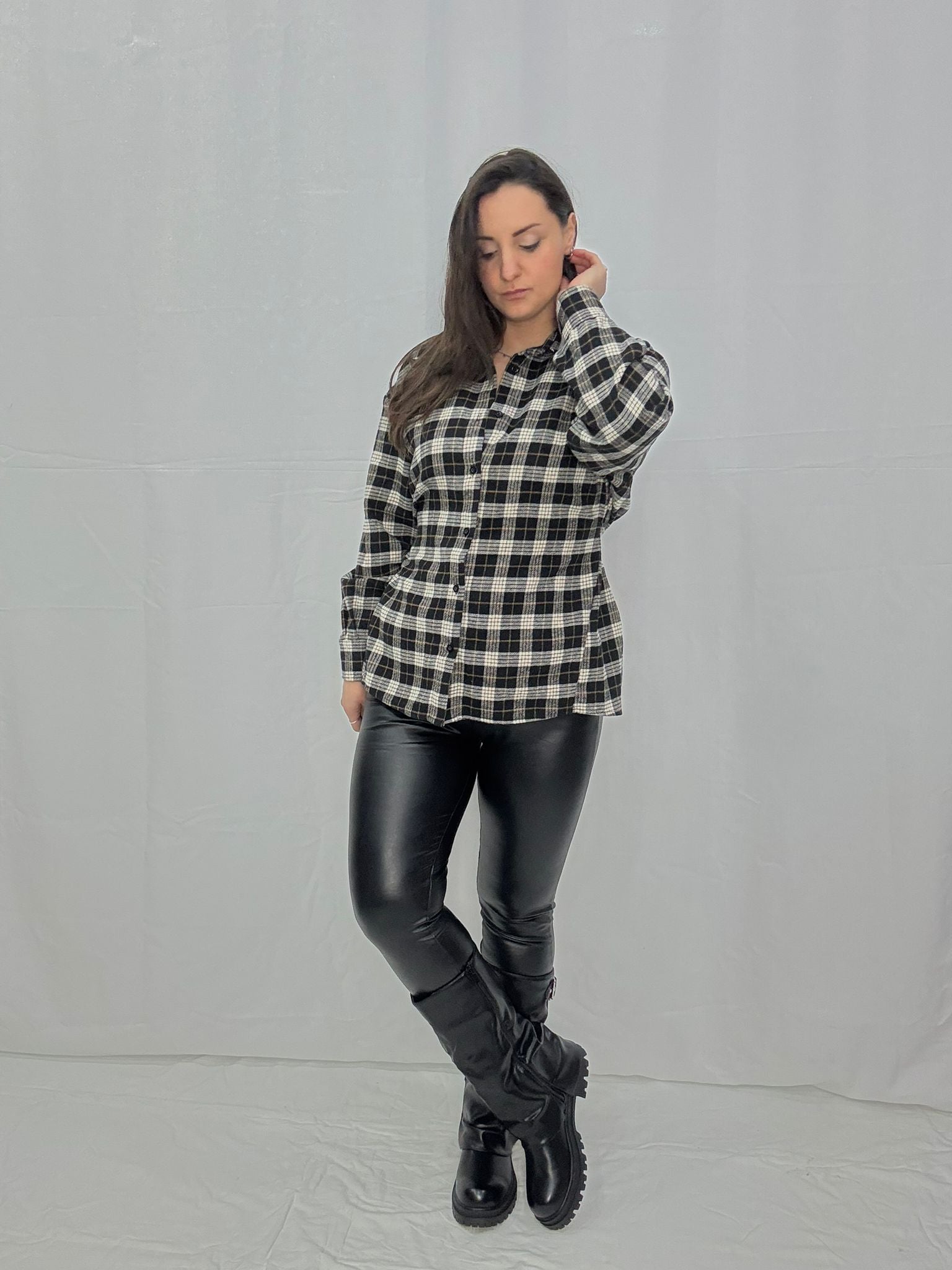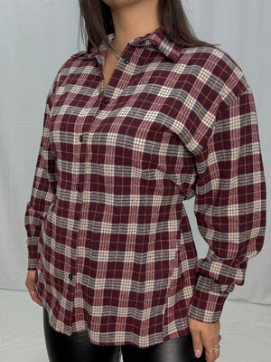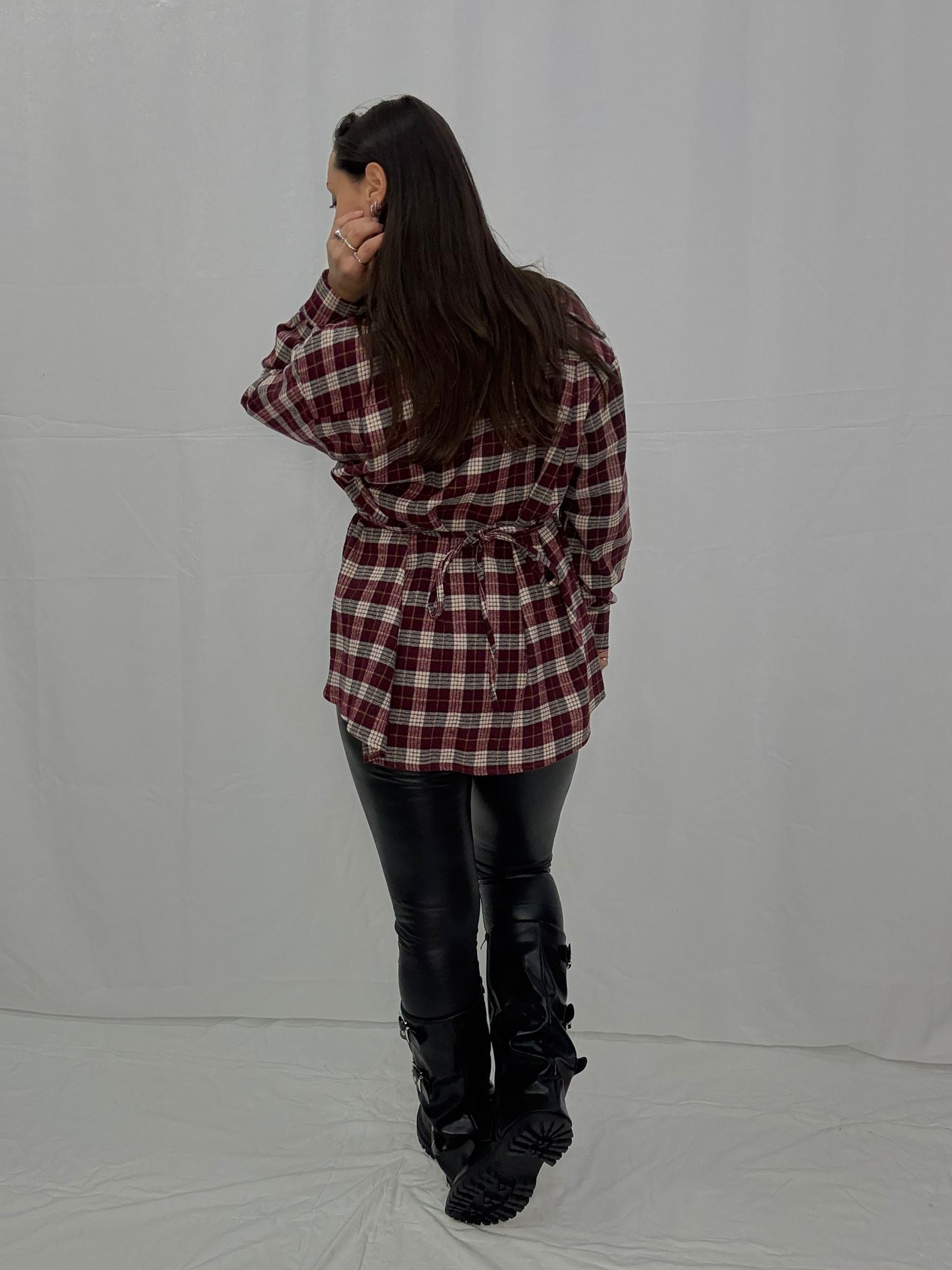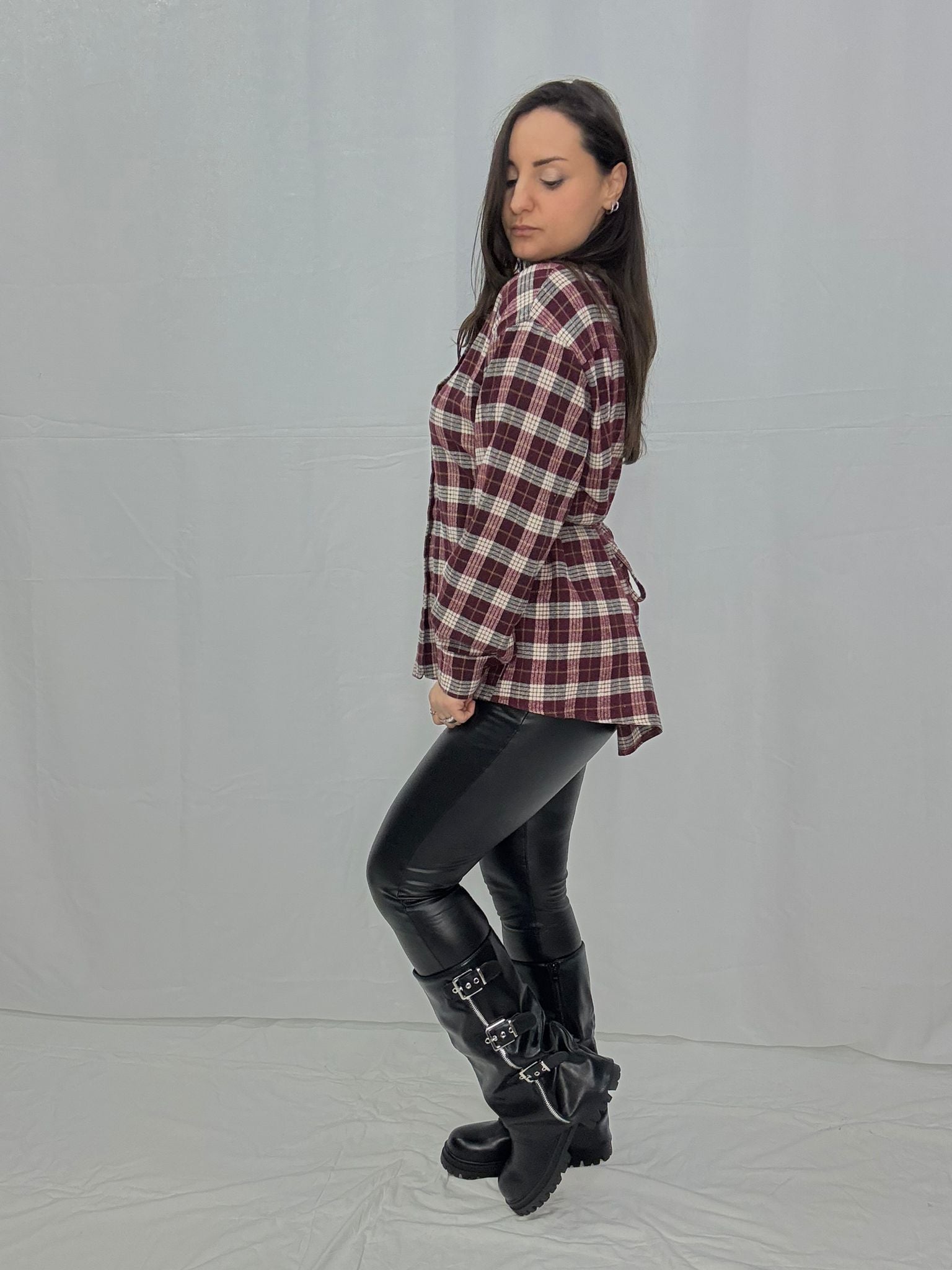 Camicione fantasia quadri modello Basic con aggiunta di cintura sul retro regolabile, taglia unica, vestibilità da una S fino ad una XL, comoda
