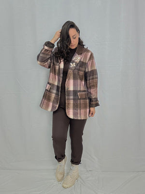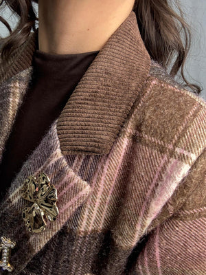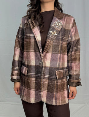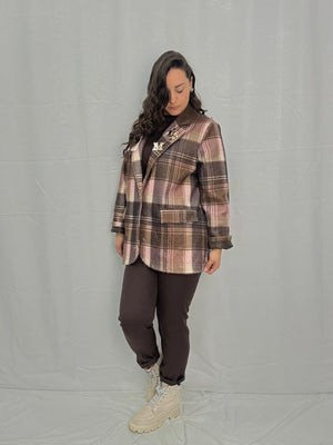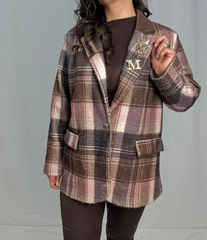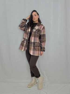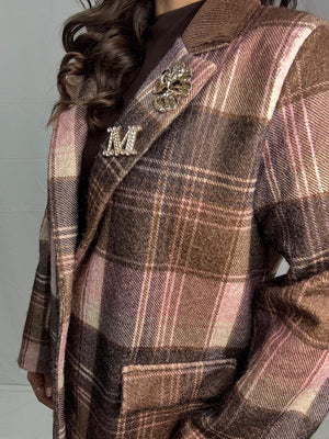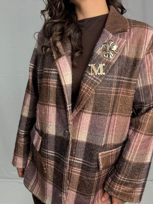 Giacca in lana, fantasia, quadri, dettaglio colletto a costi spille, removibili, taschino sul davanti, finto, foderata internamente, taglia unica, vestibilità SMLXL