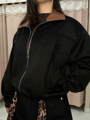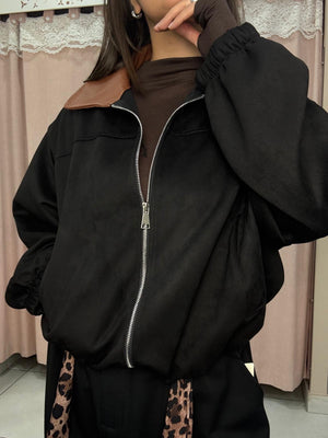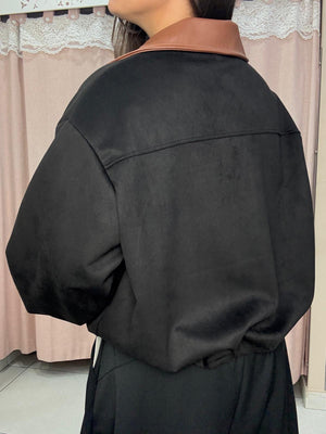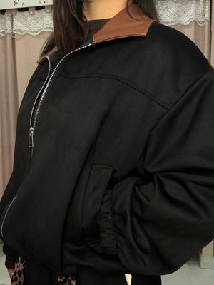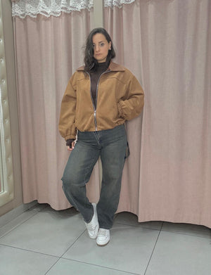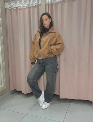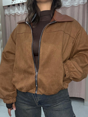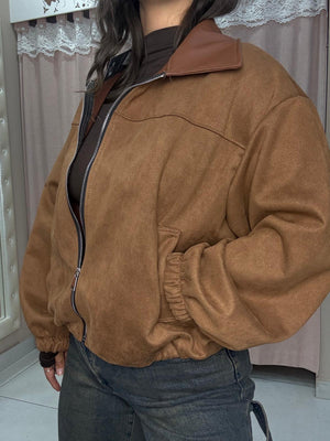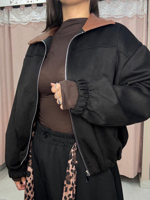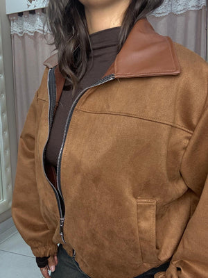 Giubbotto con colletto in ecopelle dal colore in contrasto tessuto in daino tasche America elastico sul fondo rettangolare