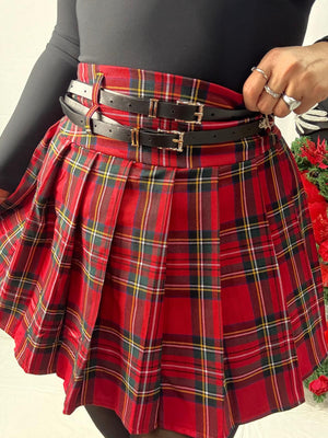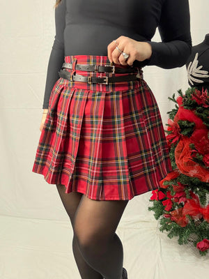 Minigonna plissettata vita alta con doppia cintura chiusura lampo laterale a scomparsa