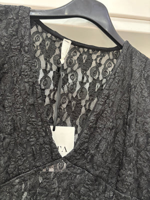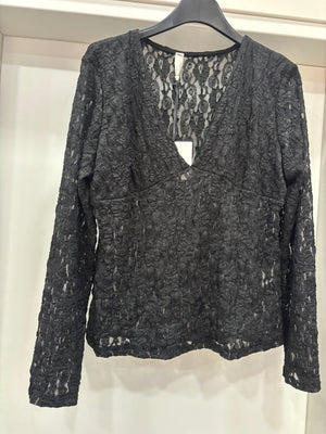Top interamente in pizzo trasparente, coppa seno foderata taglia unica, vestibilità da 46 fino ad una 52 abbondante