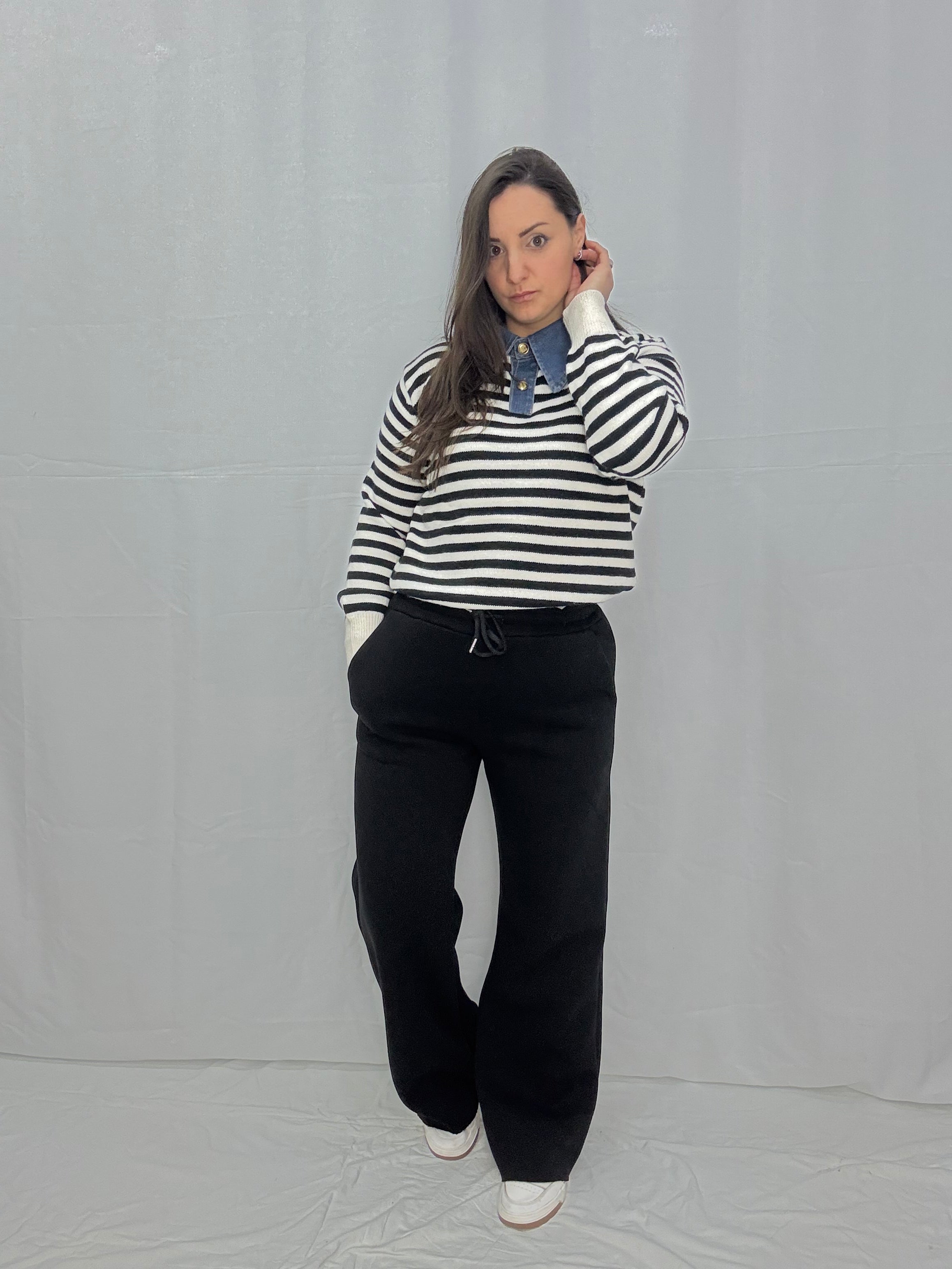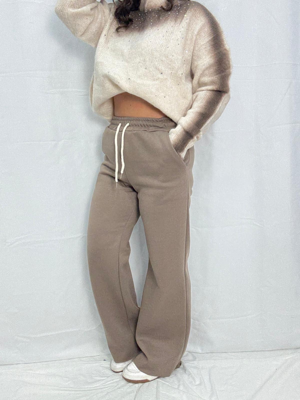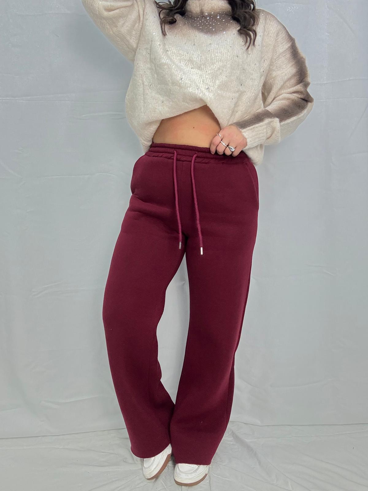 Pantalone, palazzo in 100% cotone esterno, interamente felpato all’interno elastico e l’accetto in vita, taglia unica vestibilità s m L