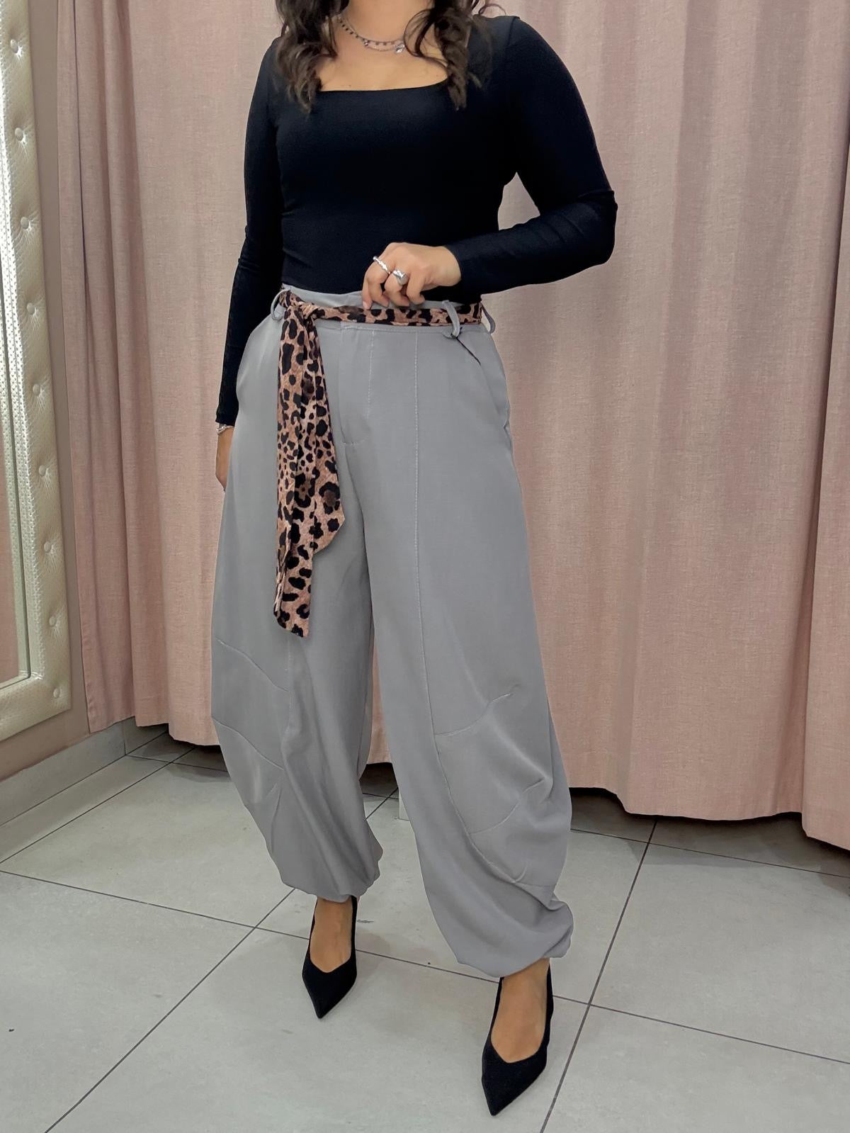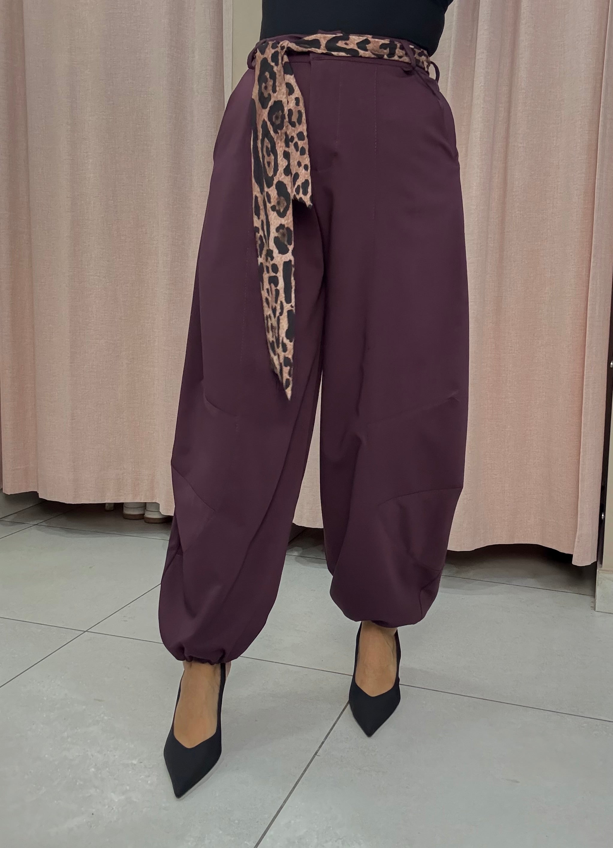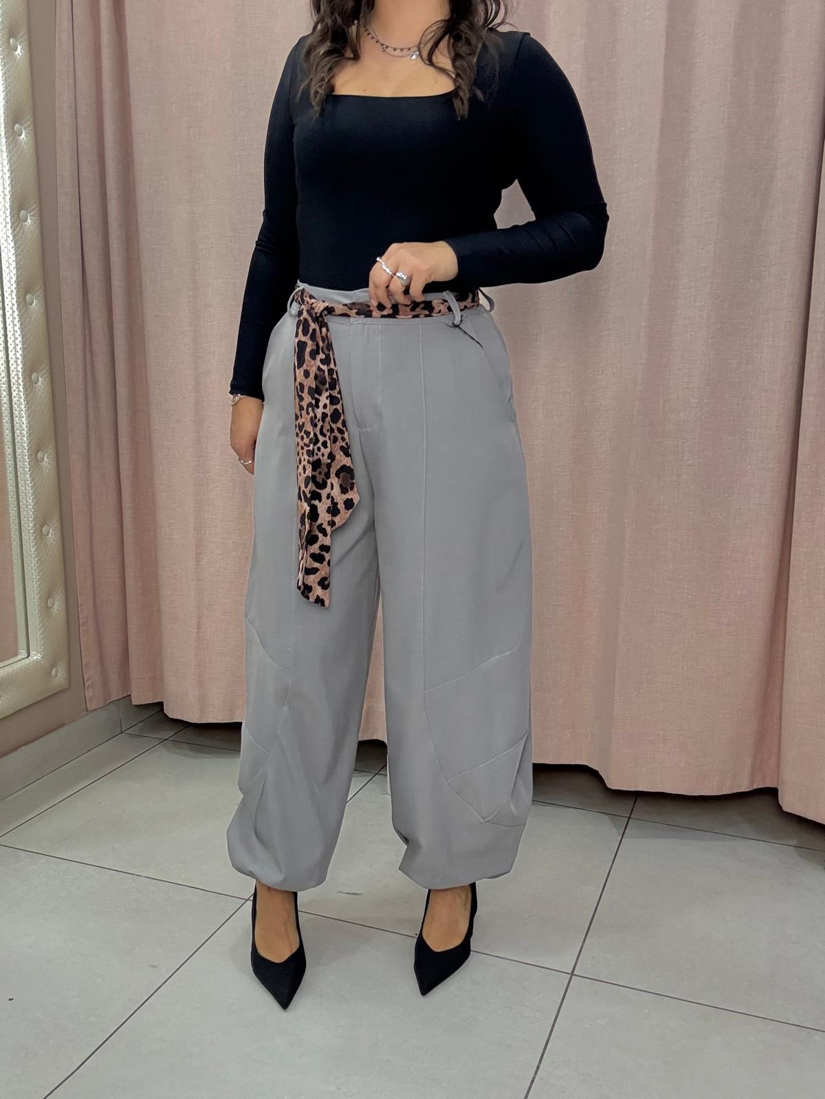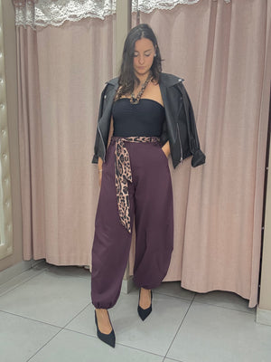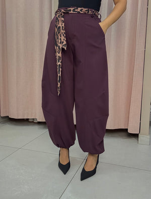 Pantalone in tessuto modello ballon con bustino frontale con zip e bottone ed elastico sul retro
