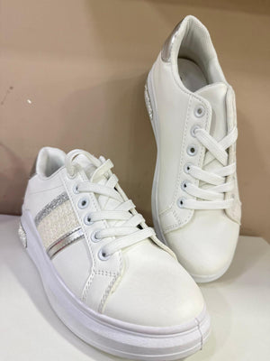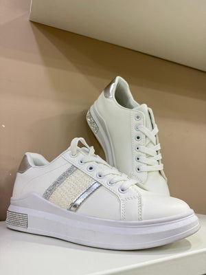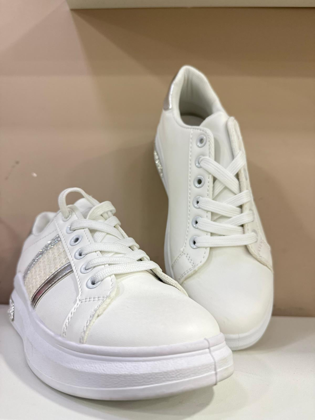 Scarpetta con leggero rialzo interno, dettagli glitter ai lati e sul retro