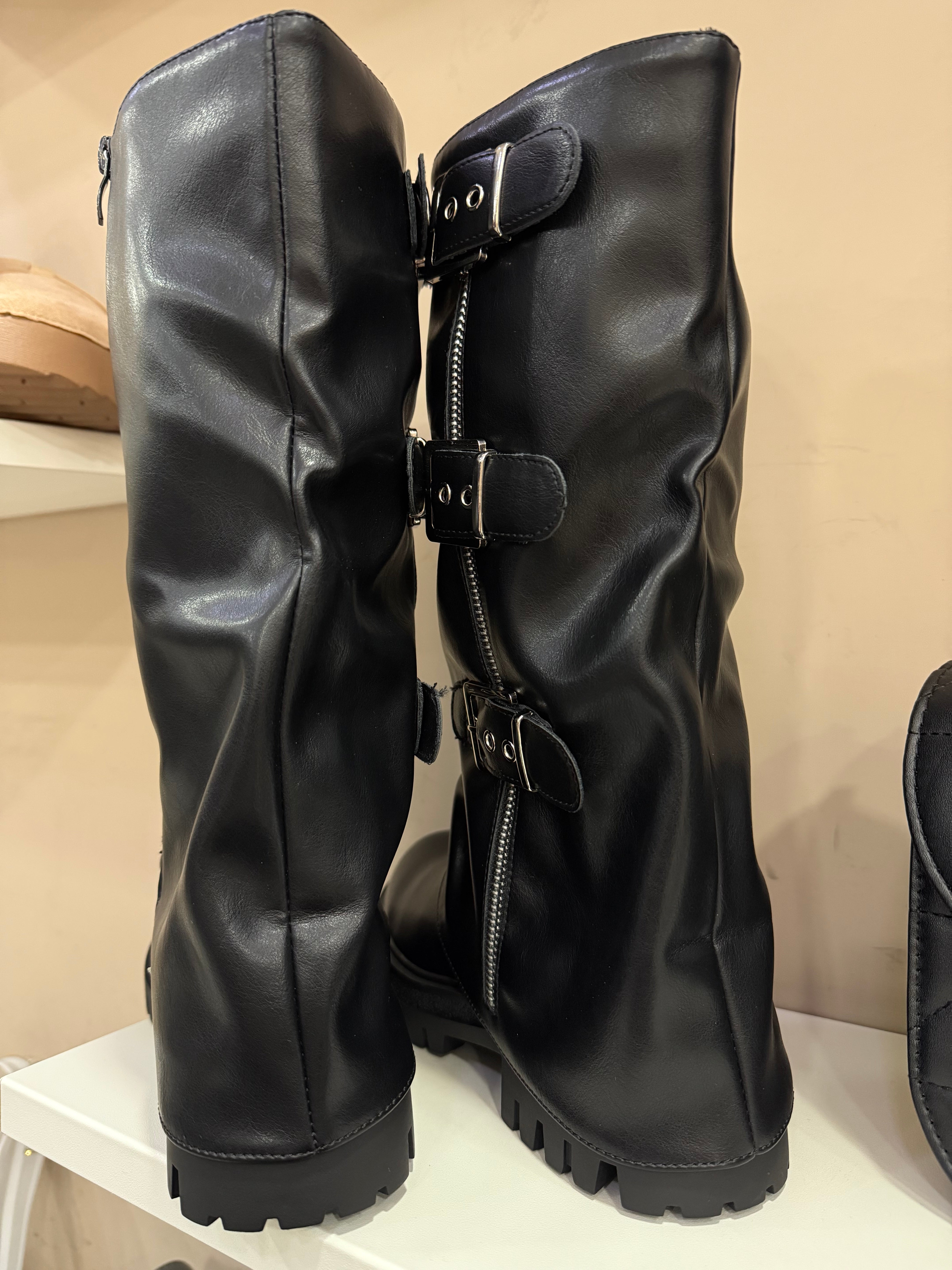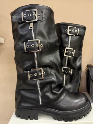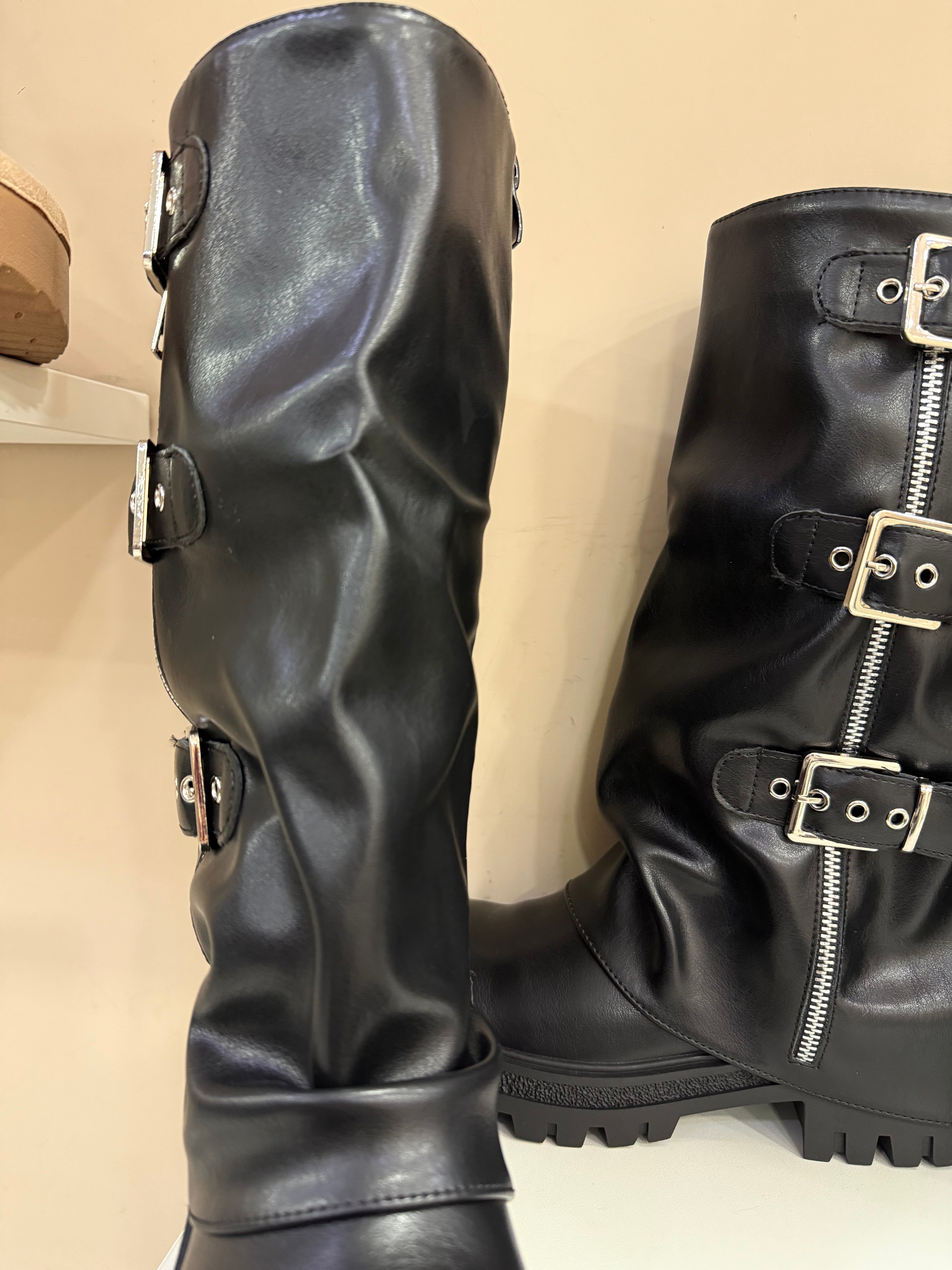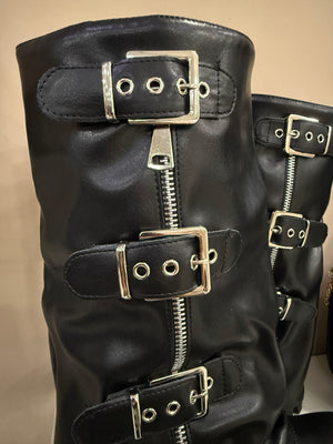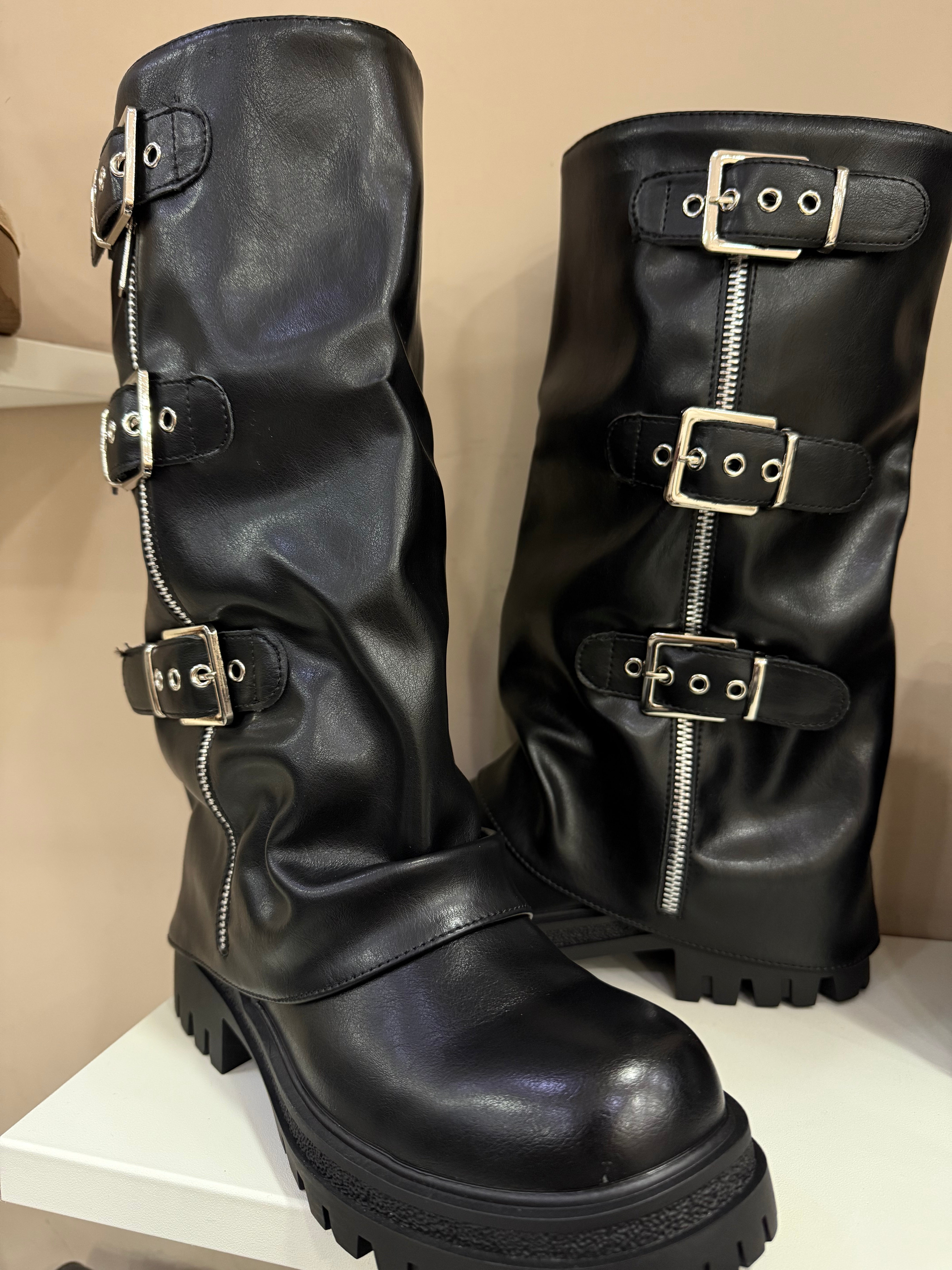 Stivale modello anfibio con fibbie laterali regolabili e zip interna