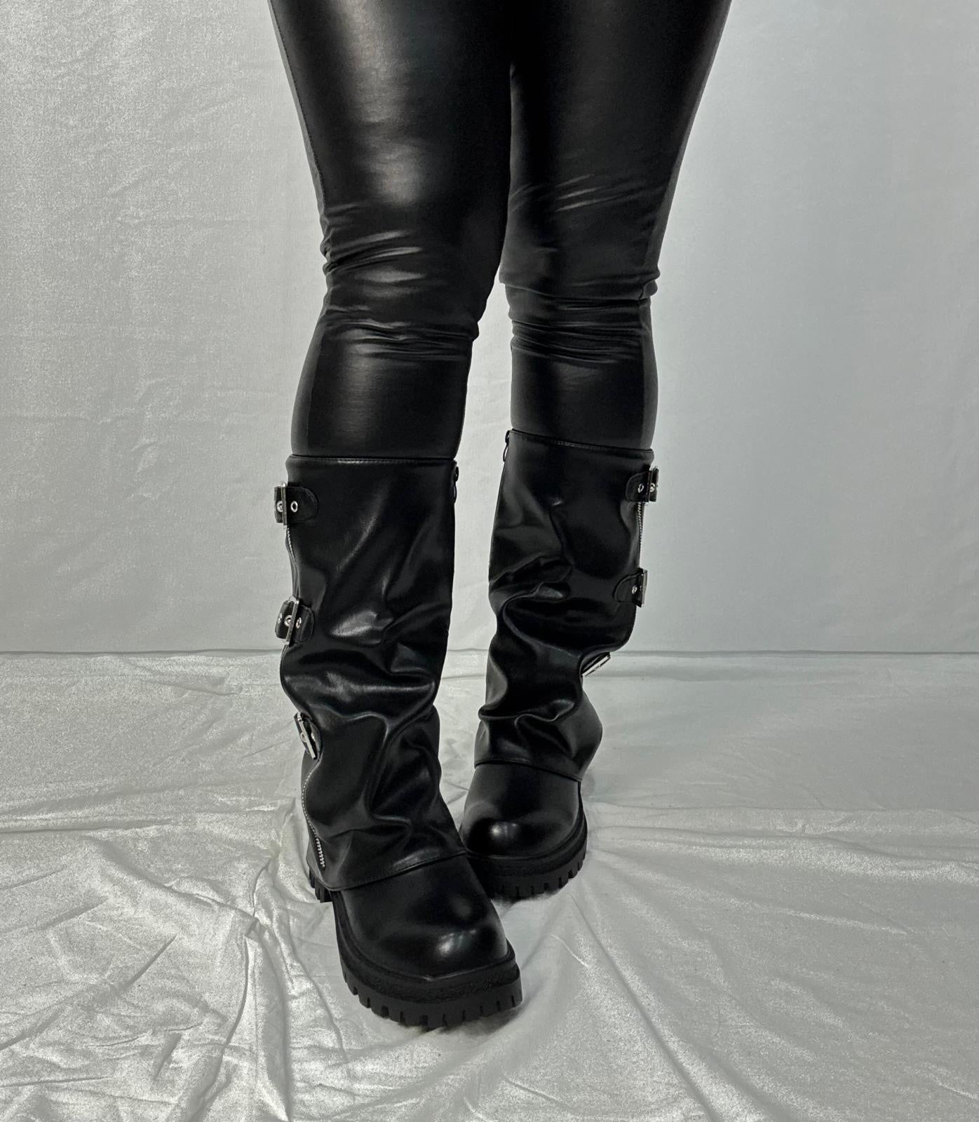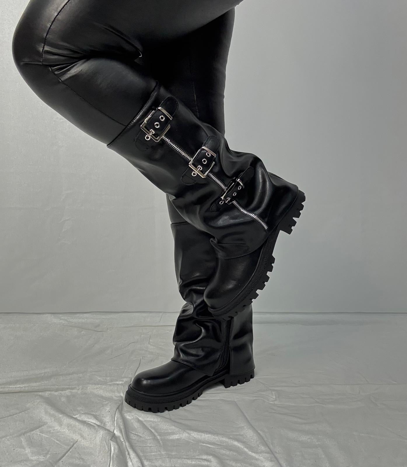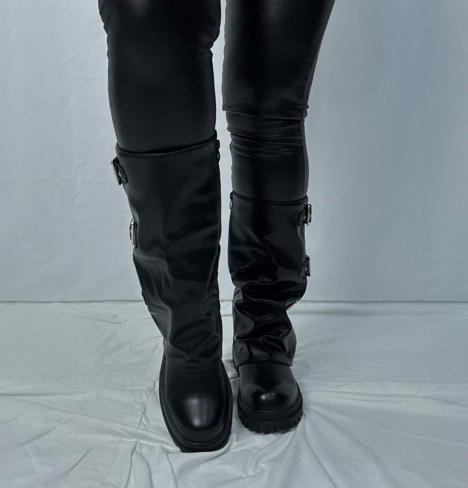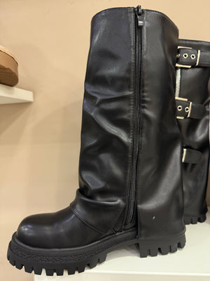 Stivale modello anfibio con fibbie laterali regolabili e zip interna