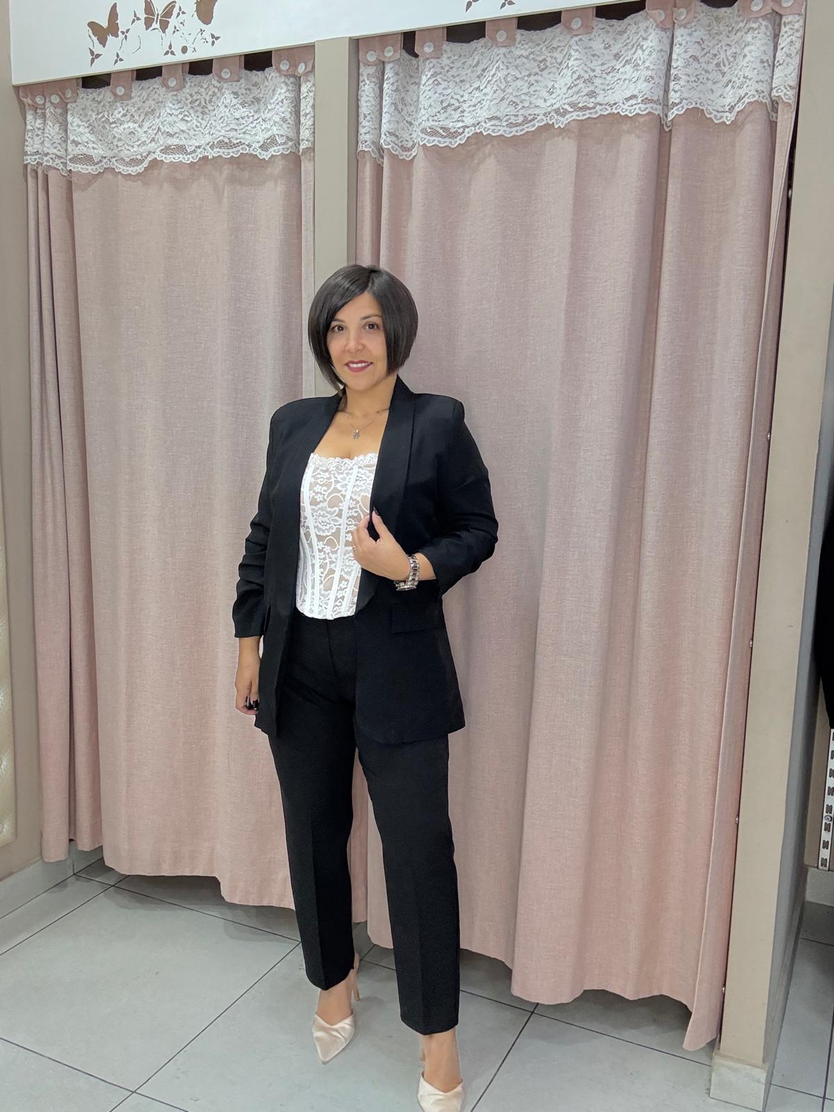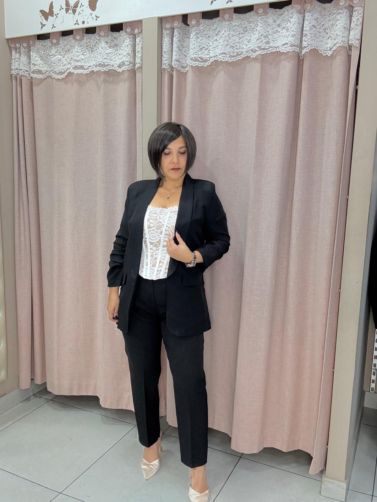 Tailleur composto da blazer con manica arricciata, foderato internamente non elastico