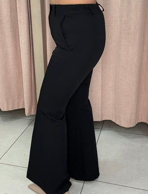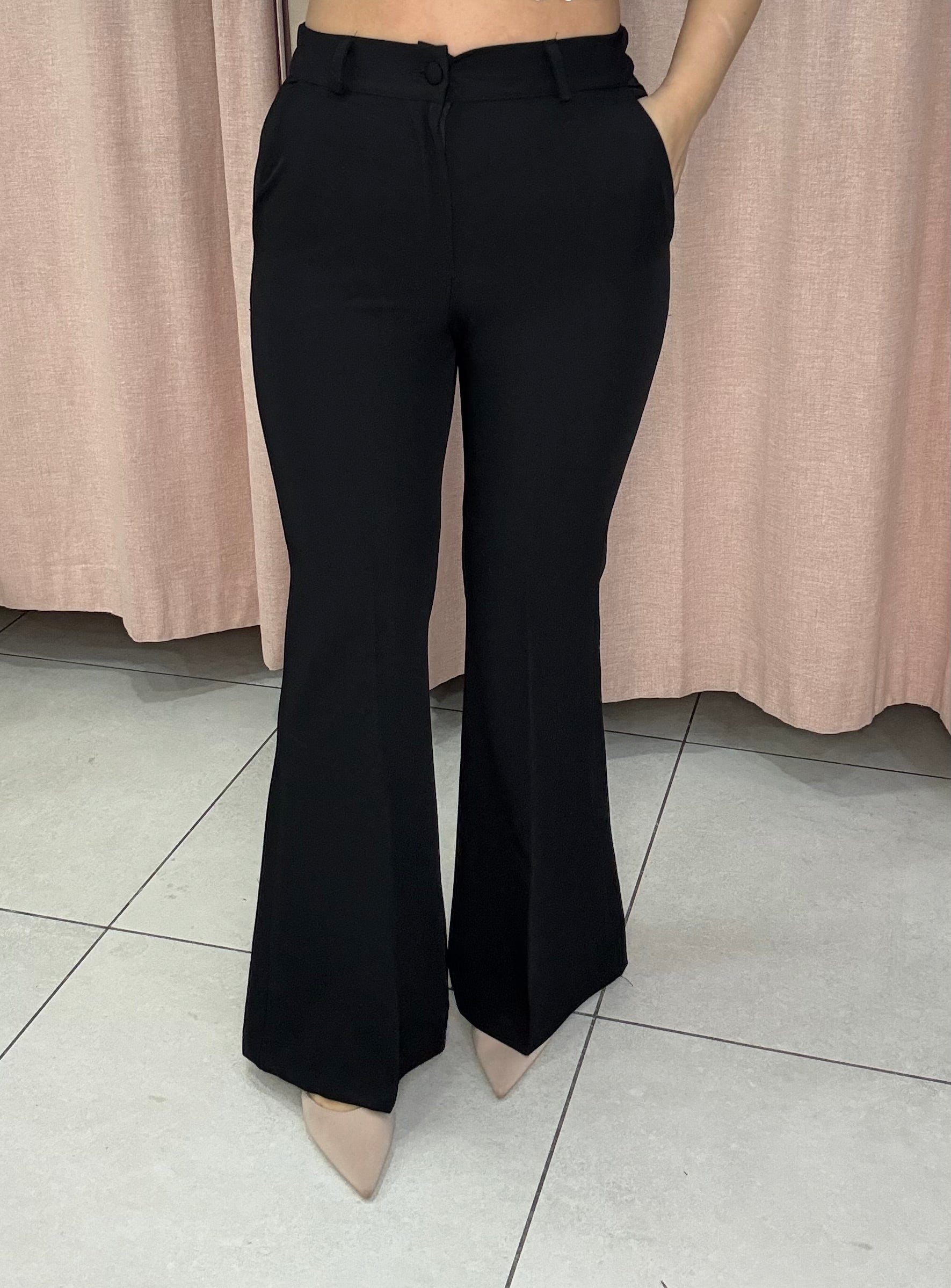 pantalone vita alta modello a zampa con classico bustino frontale con zip e bottone
