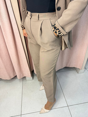 pantalone semi palazzo con bustino frontale composto da zip e bottone ed elastico sul retro