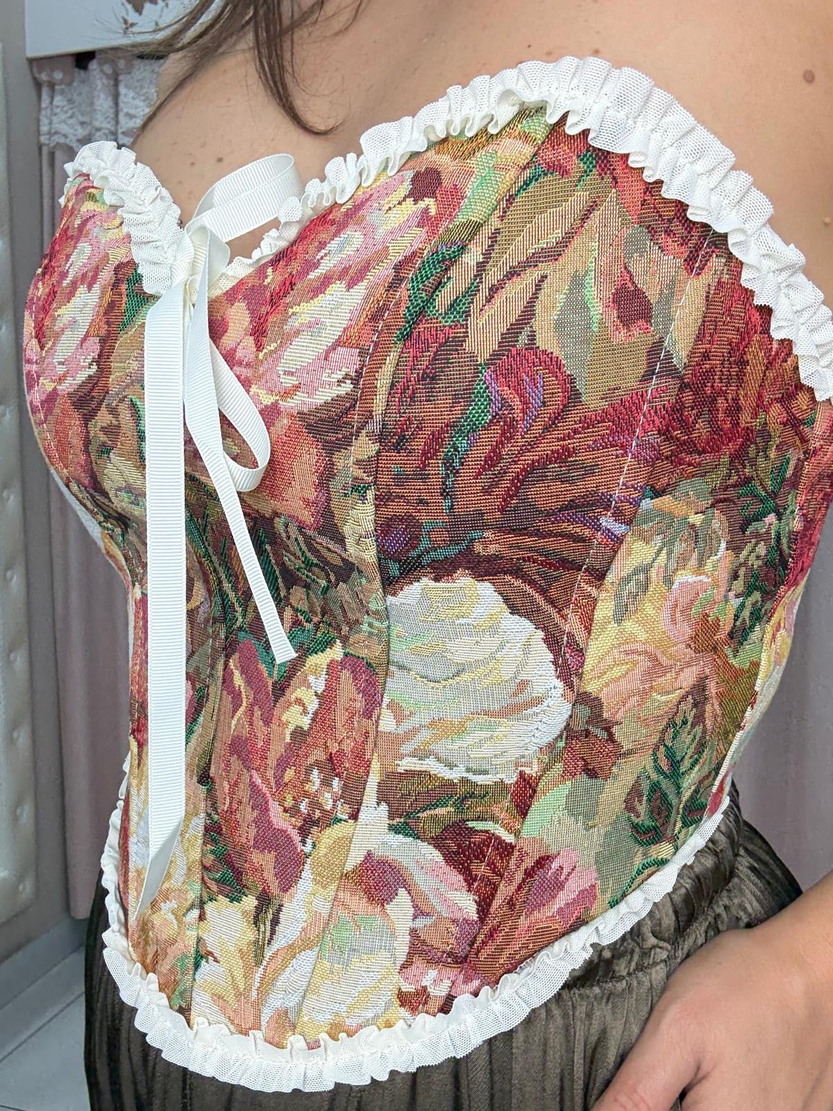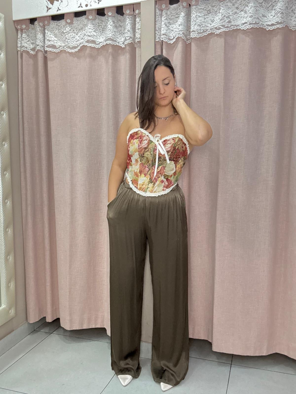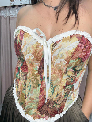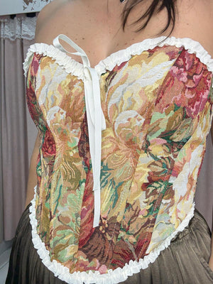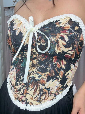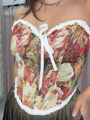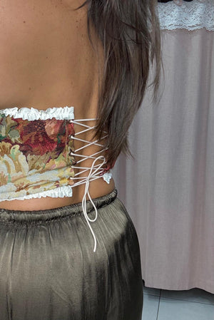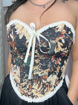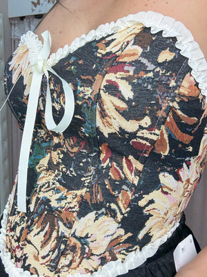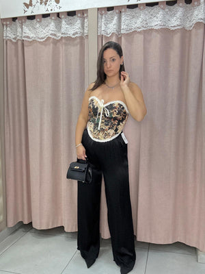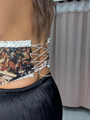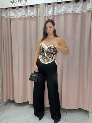 Corsetto con inserti in pizzo fiocco sul davanti coppa preformata stringhe con elastico sul retro taglia unica vestibilità XSSM