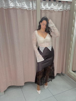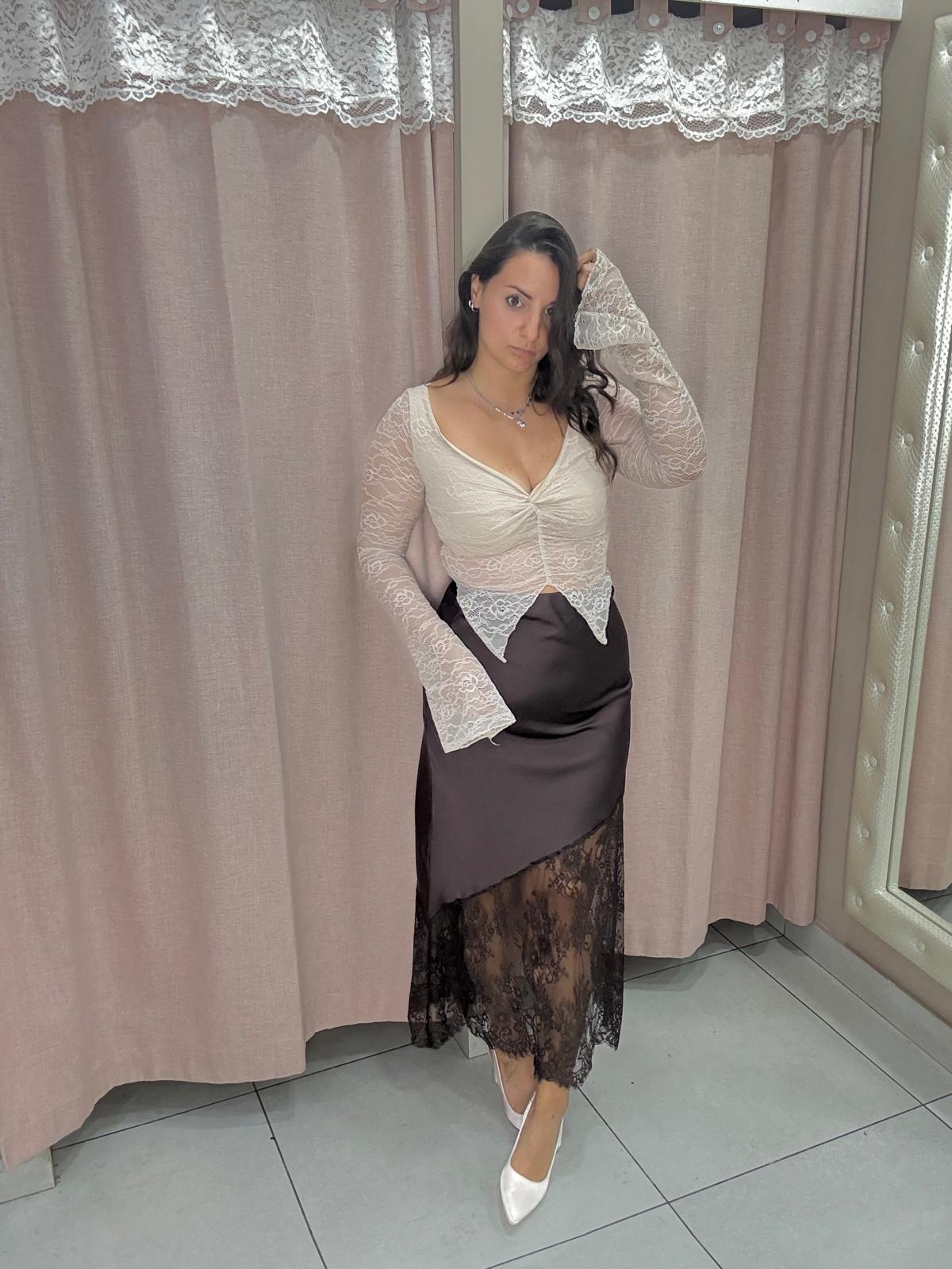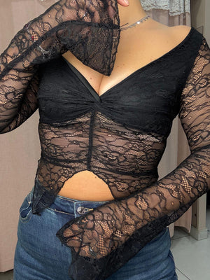 Crop top interamente in pizzo modello farfalla