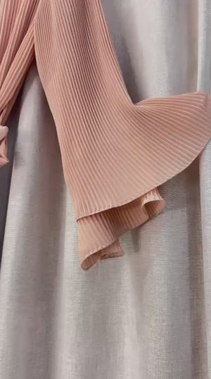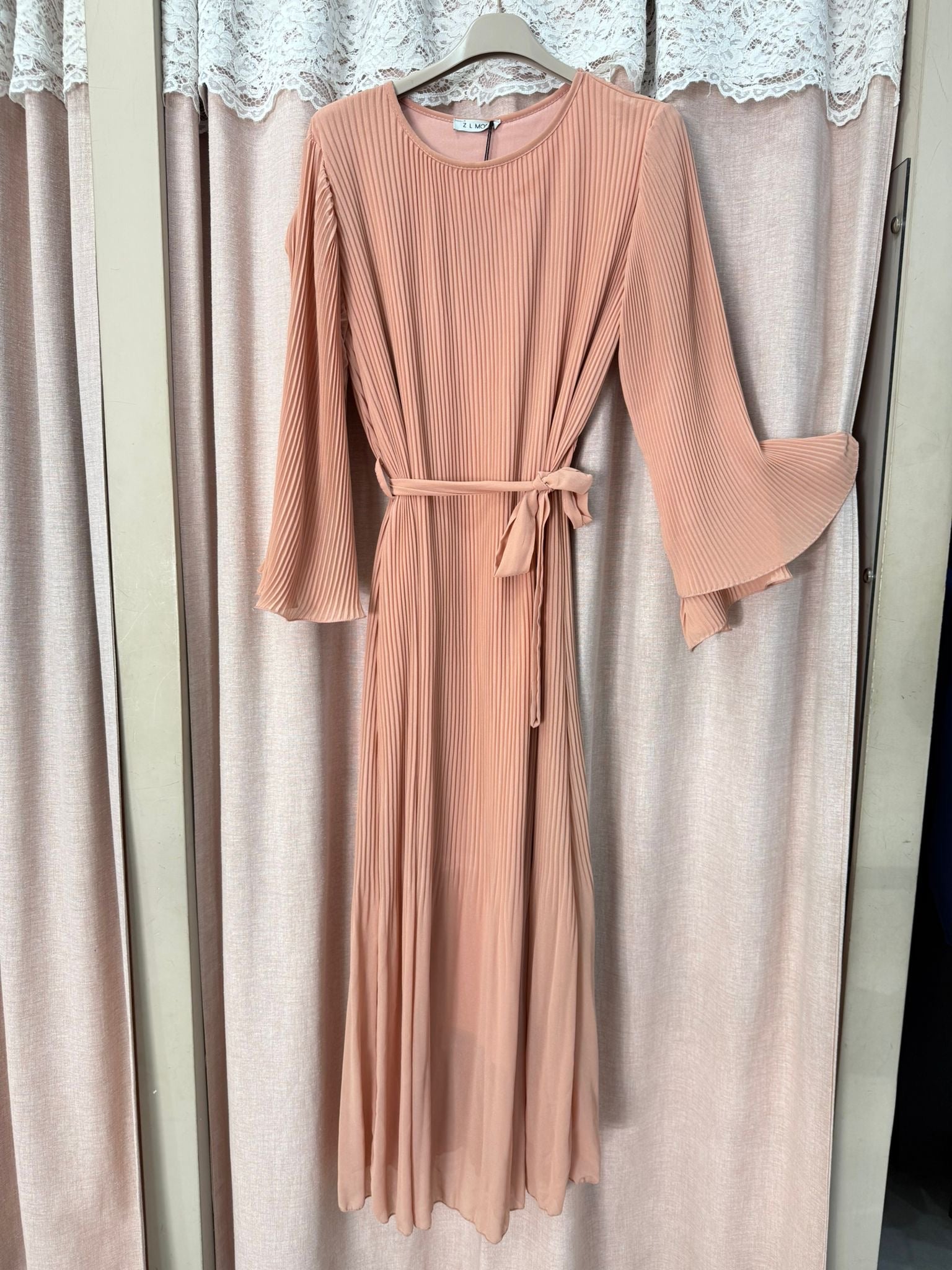 Abito lungo interamente plissettato con maniche ampie orlate cinturino in vita taglia unica veste fino ad una 56 abbondante