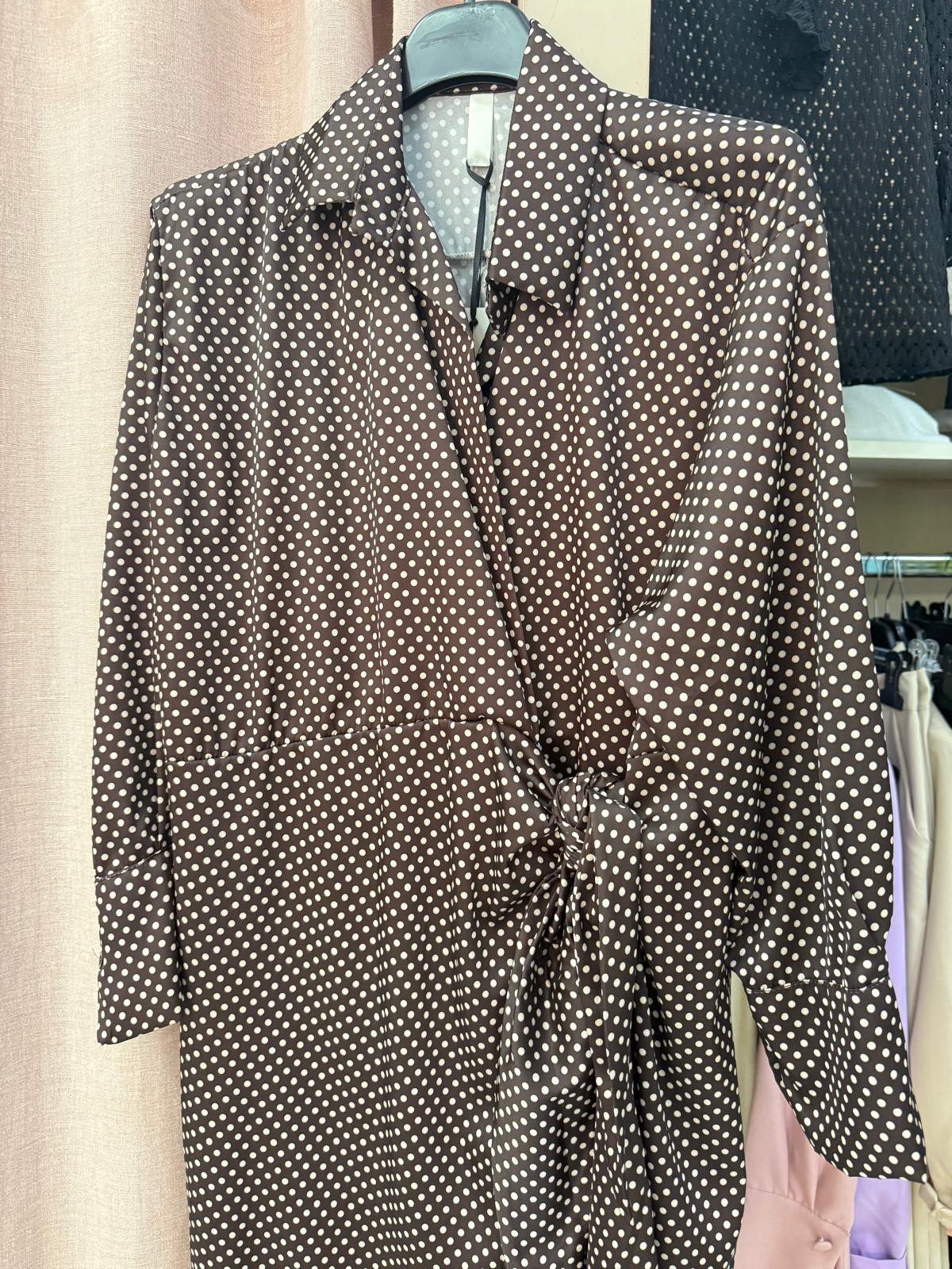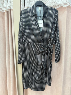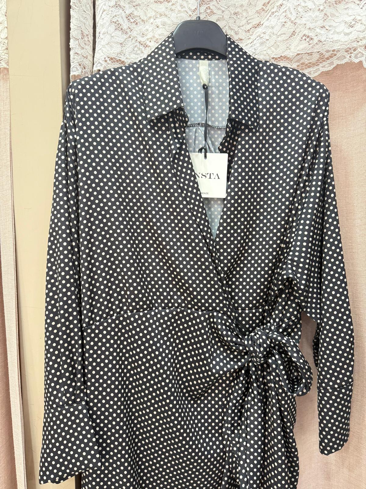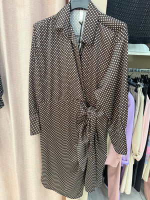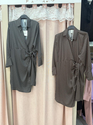 Abito a portafoglio fantasia pois, con laccetto regolabile all’Interno e fusciacca all’esterno