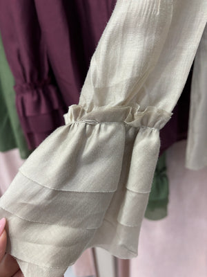 Camicetta velata, semi trasparente, arricchita da Rush Presenta un elastico al polso, volendo regolare la lunghezza taglia unica, veste fino ad una 54