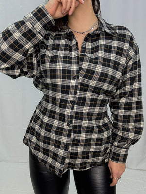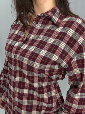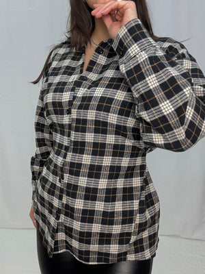 Camicione fantasia quadri modello Basic con aggiunta di cintura sul retro regolabile, taglia unica, vestibilità da una S fino ad una XL, comoda