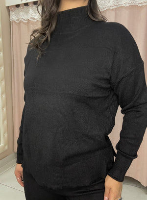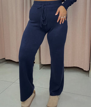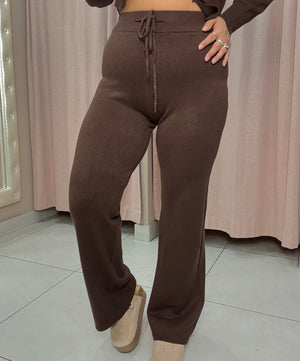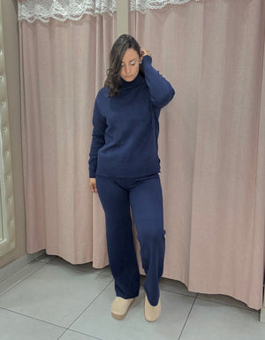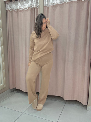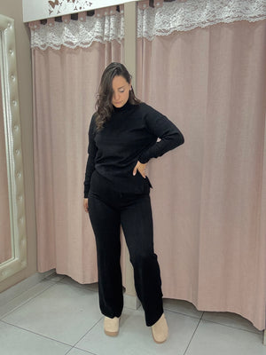 composto da maxi maglia mezzo collo con spacchetti laterali e pantalone palazzo con elastico e coulisse in vita