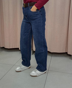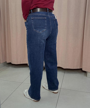 Jeans, vita alta, palazzo molto elastico, lavaggio Denim, scuro, consigliata una taglia in meno a quella che si ha cintura inclusa