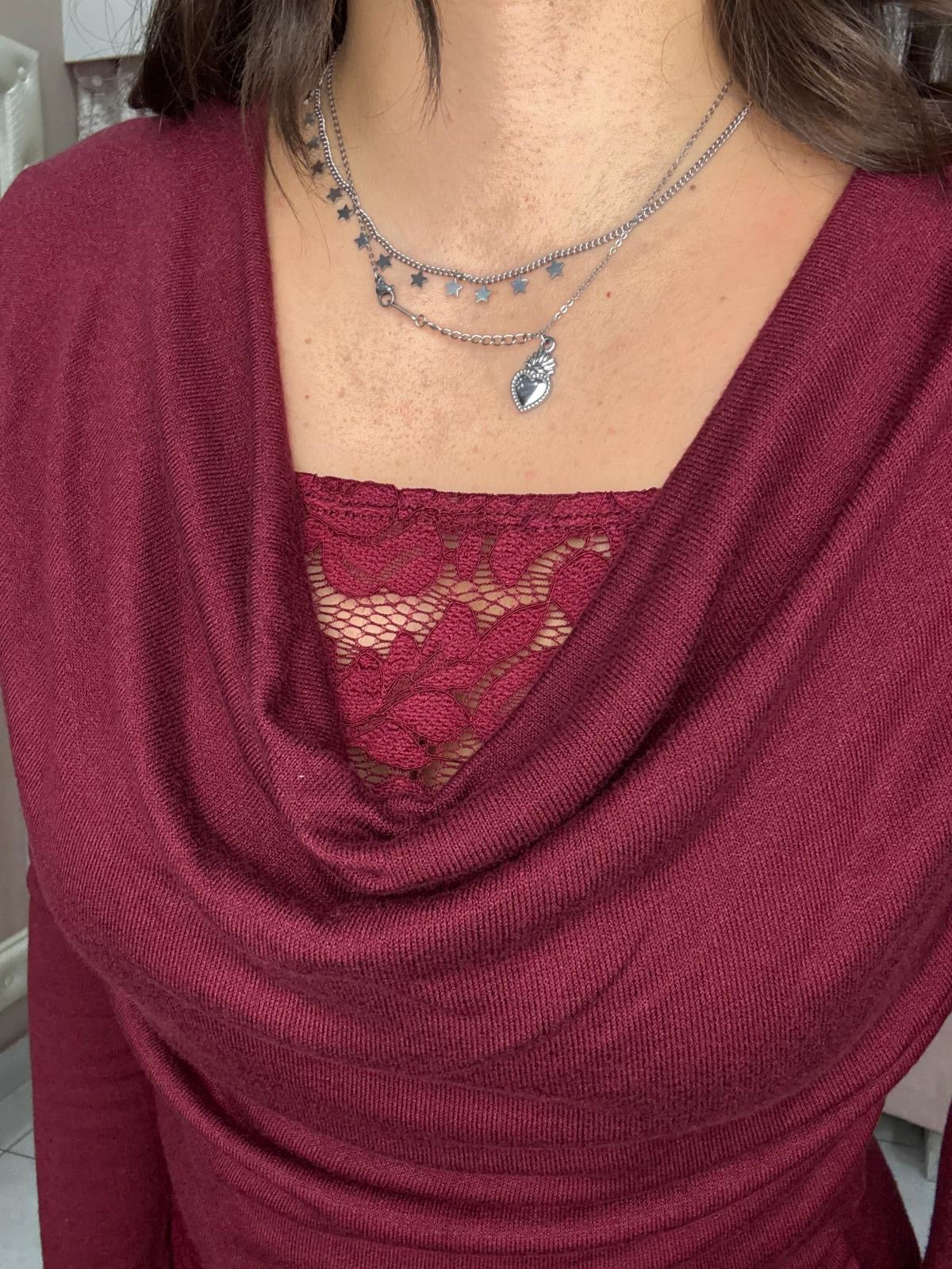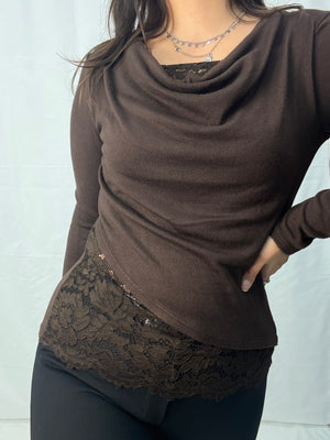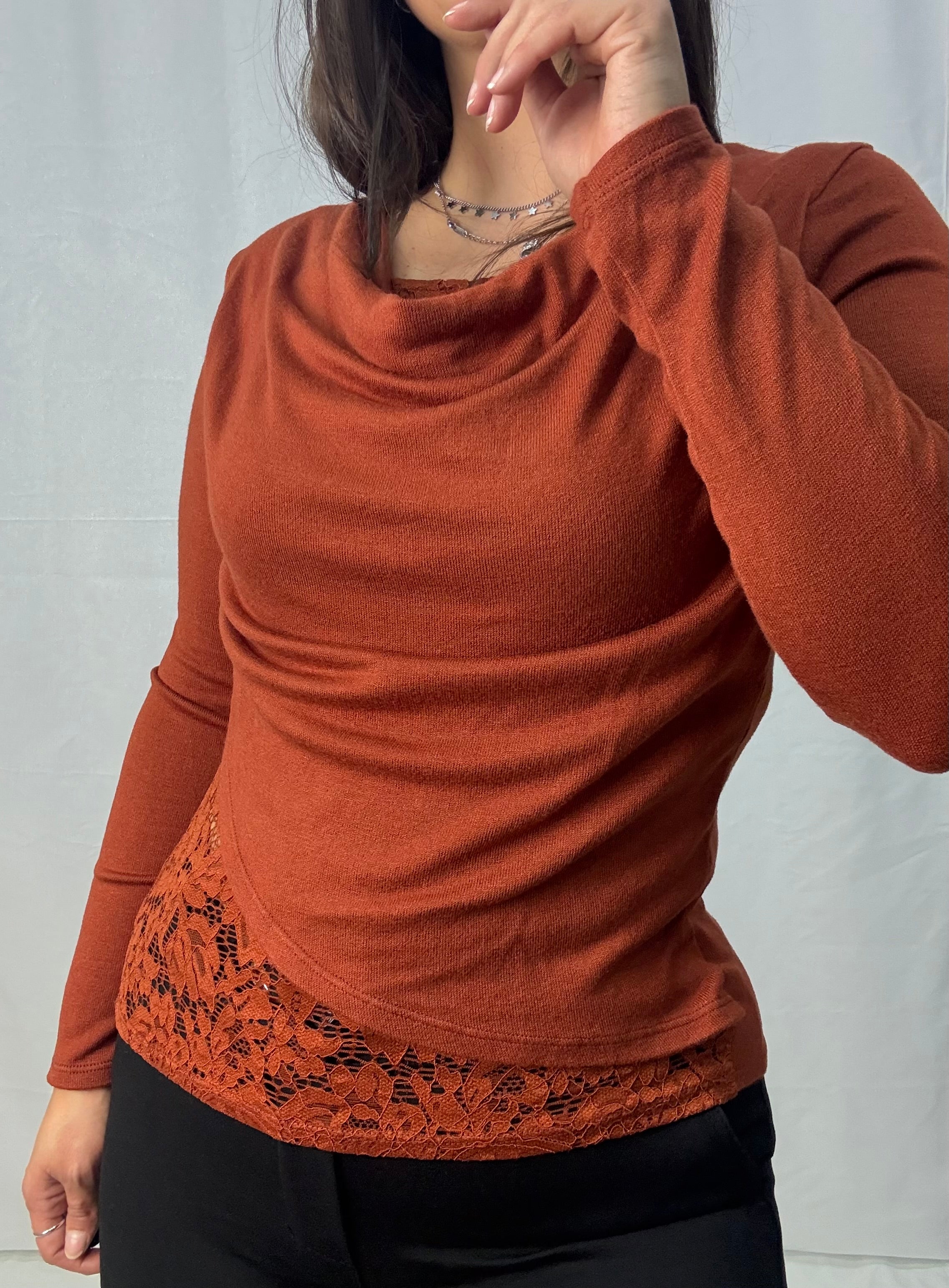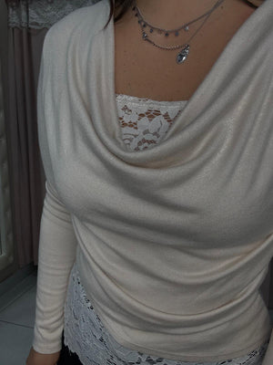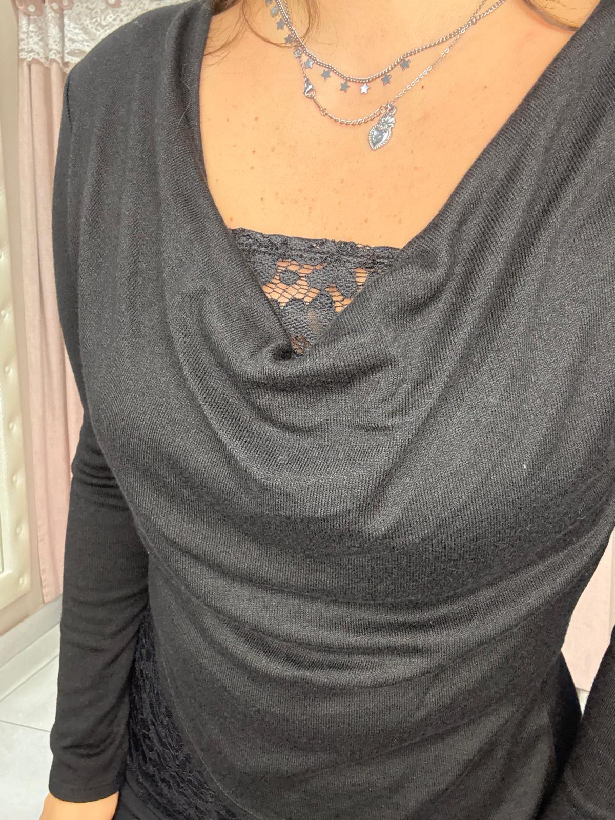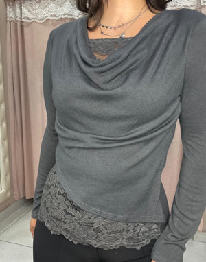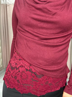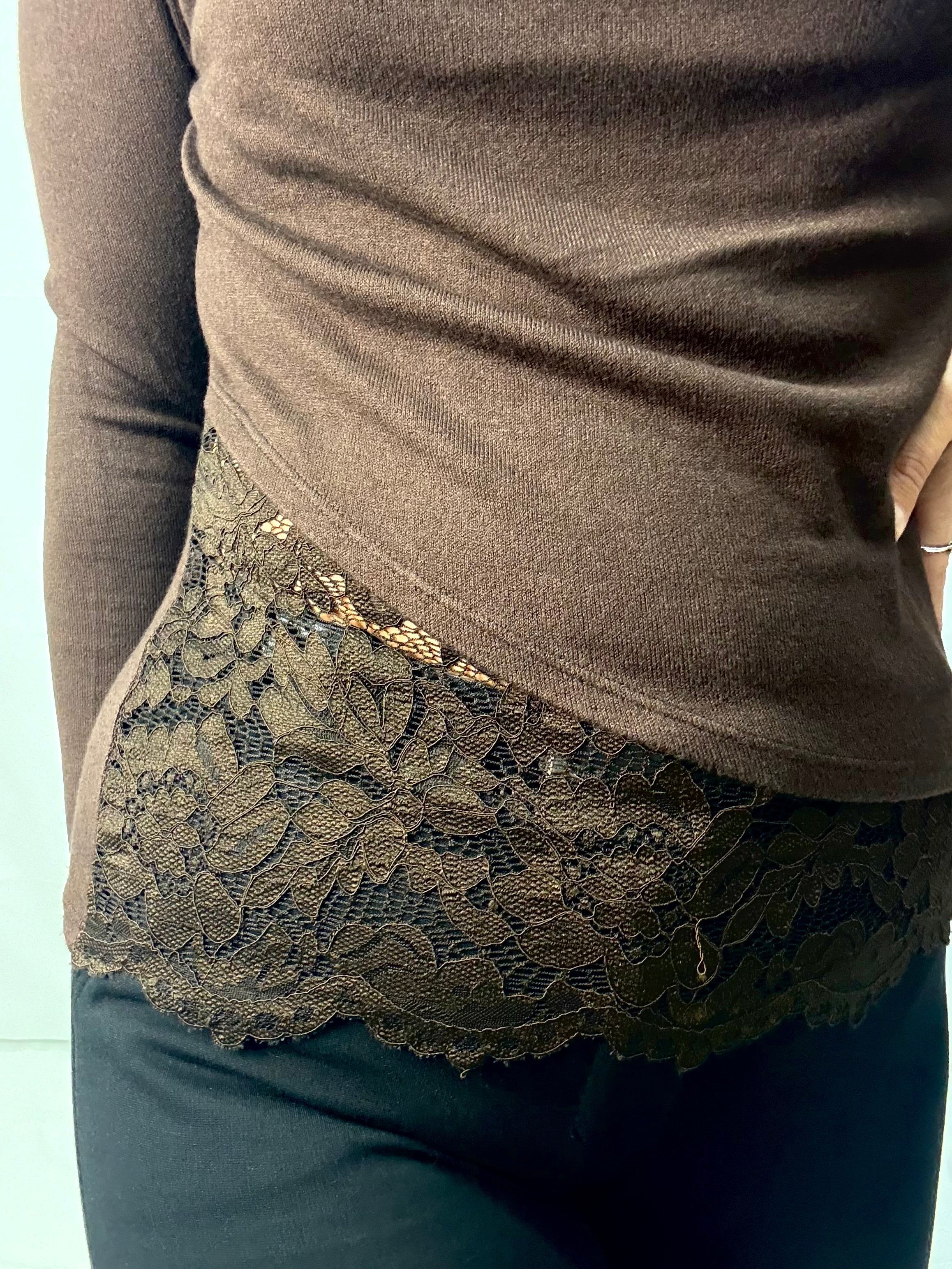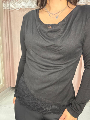 Maglia in lana rasata con dettagli in pizzo presenti sullo scollo e sul fondo