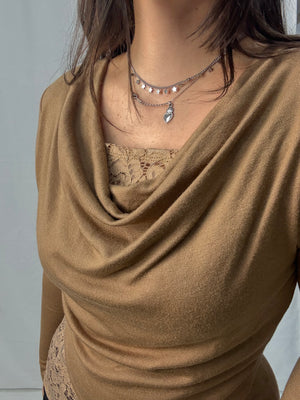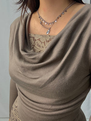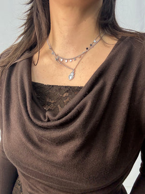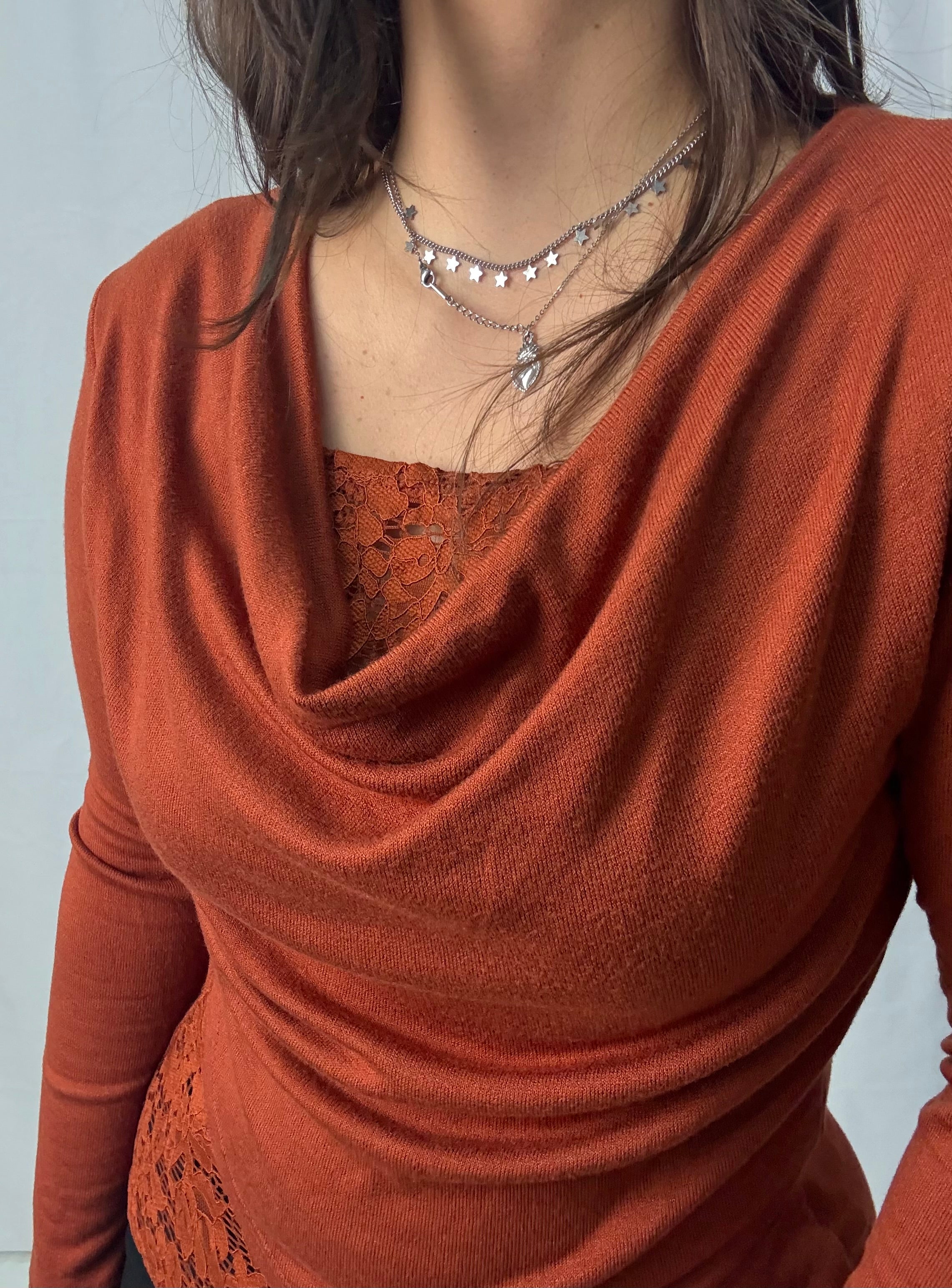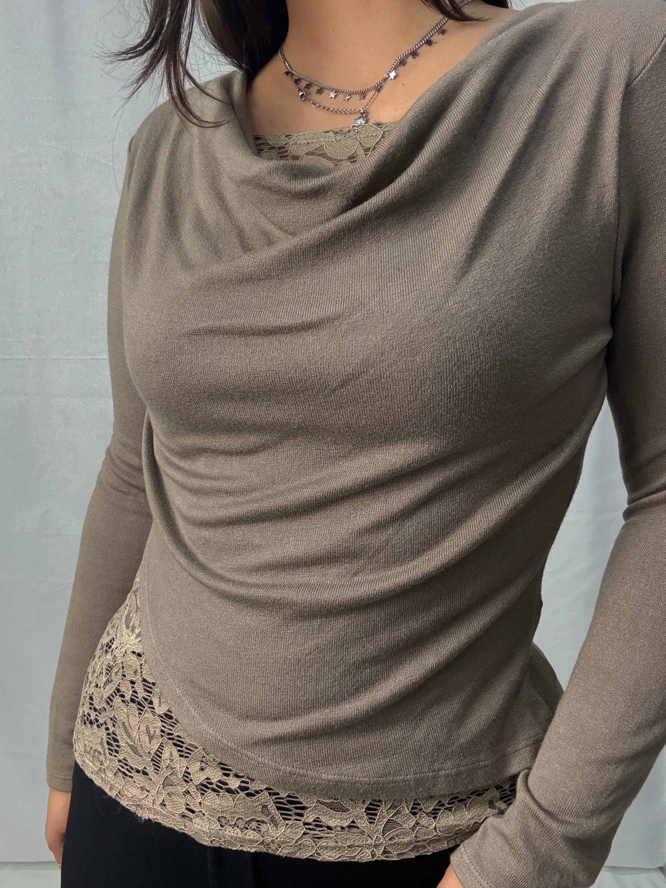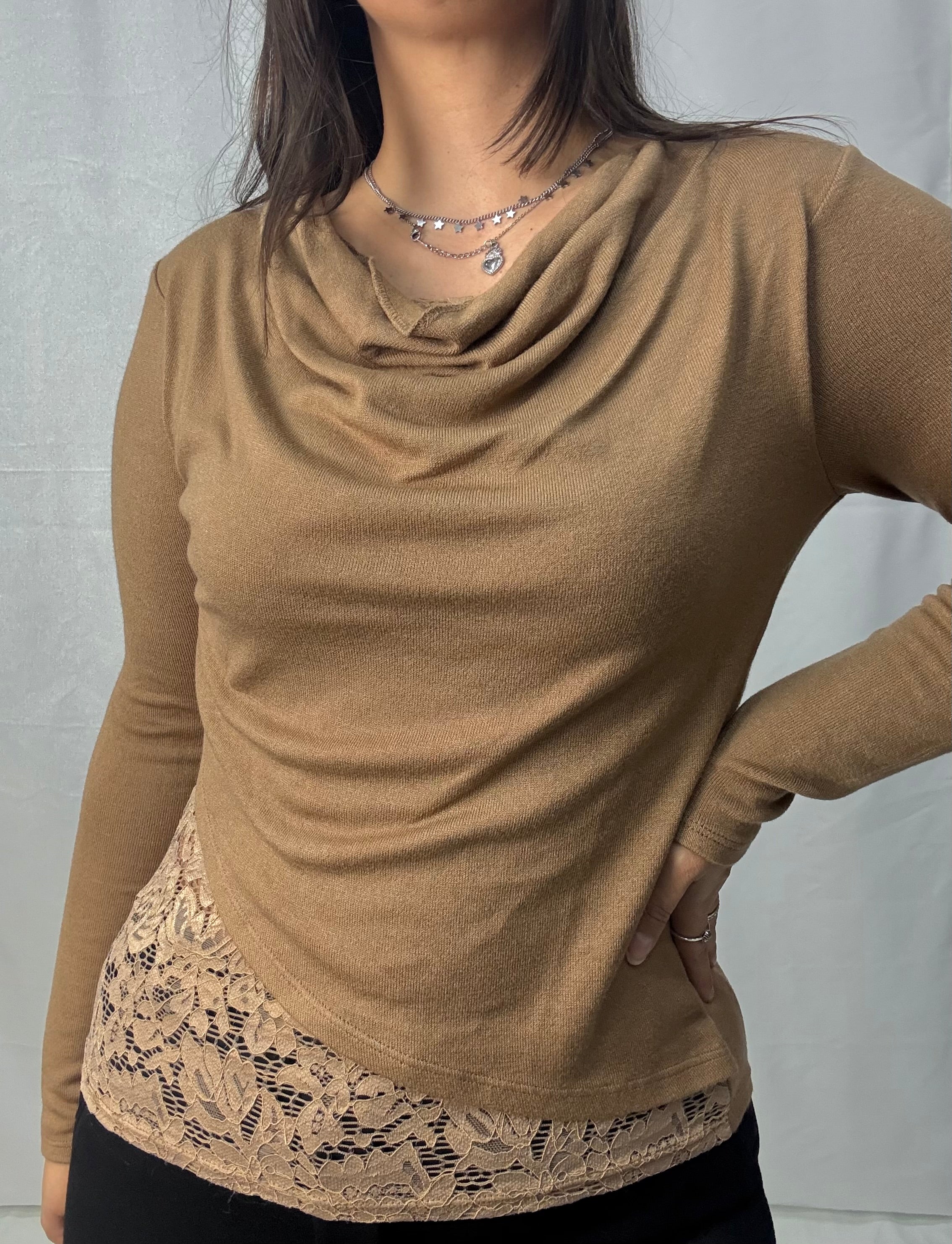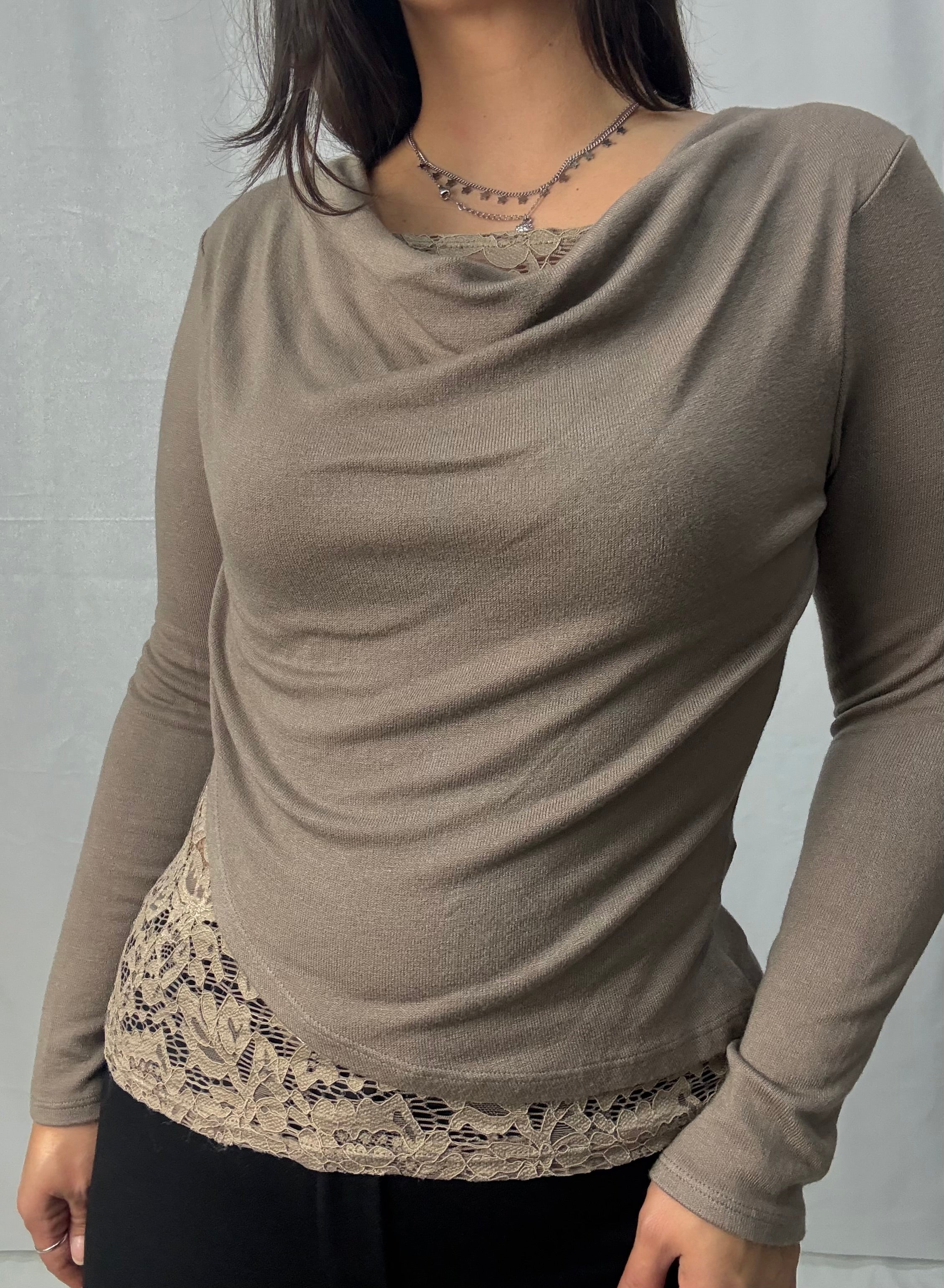 Maglia in lana rasata con dettagli in pizzo presenti sullo scollo e sul fondo