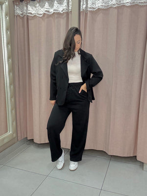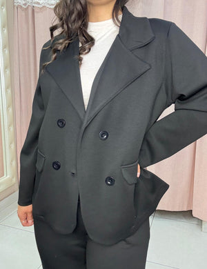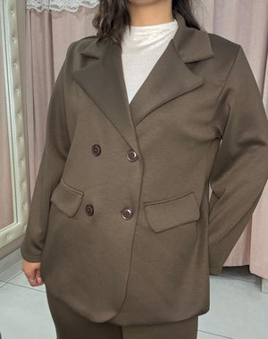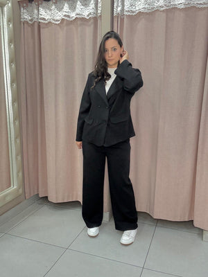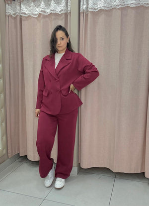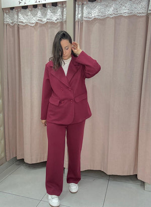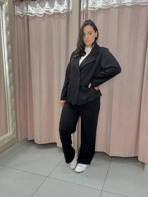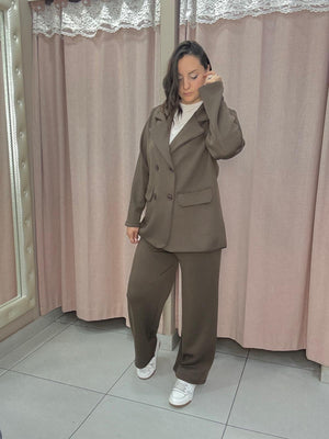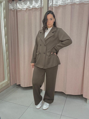 tailleur in panno composto da giacca oversize doppiopetto, pantalone con elastico in vita a palazzo, tessuto, 100% caldo, cotone completo, taglia unica, vestibilità fino a due XL